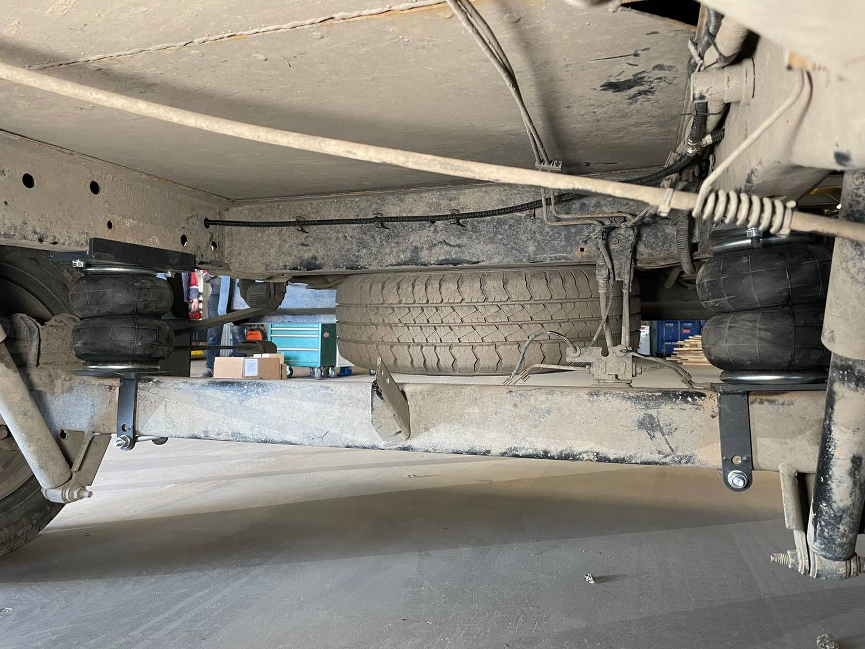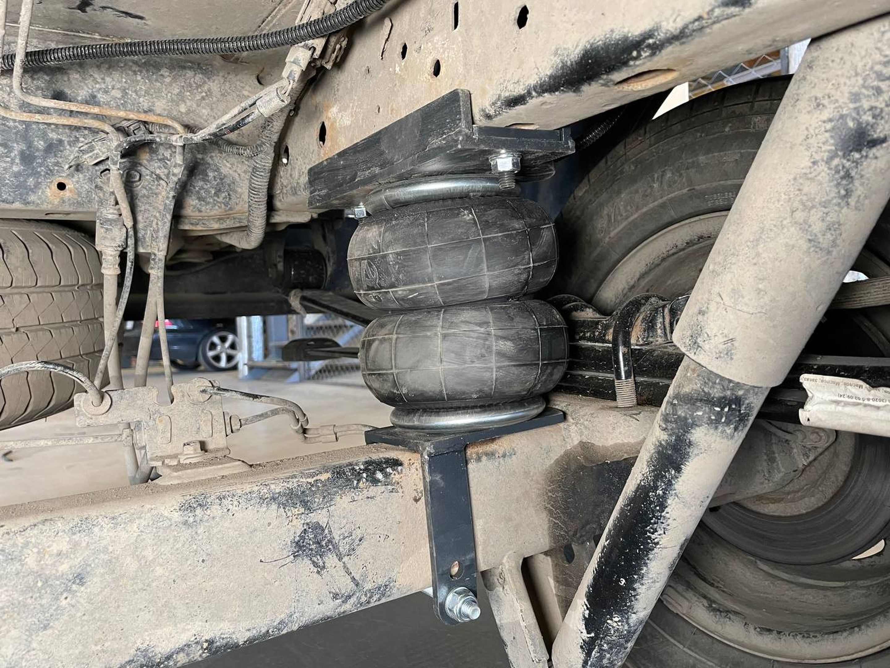 Машина приехала к нам с сильно просевшими рессорами. Замена рессор сейчас достаточно не дешёвая процедура, по-этому было принято решение по установке комплекта вспомогательной пневмоподвески.