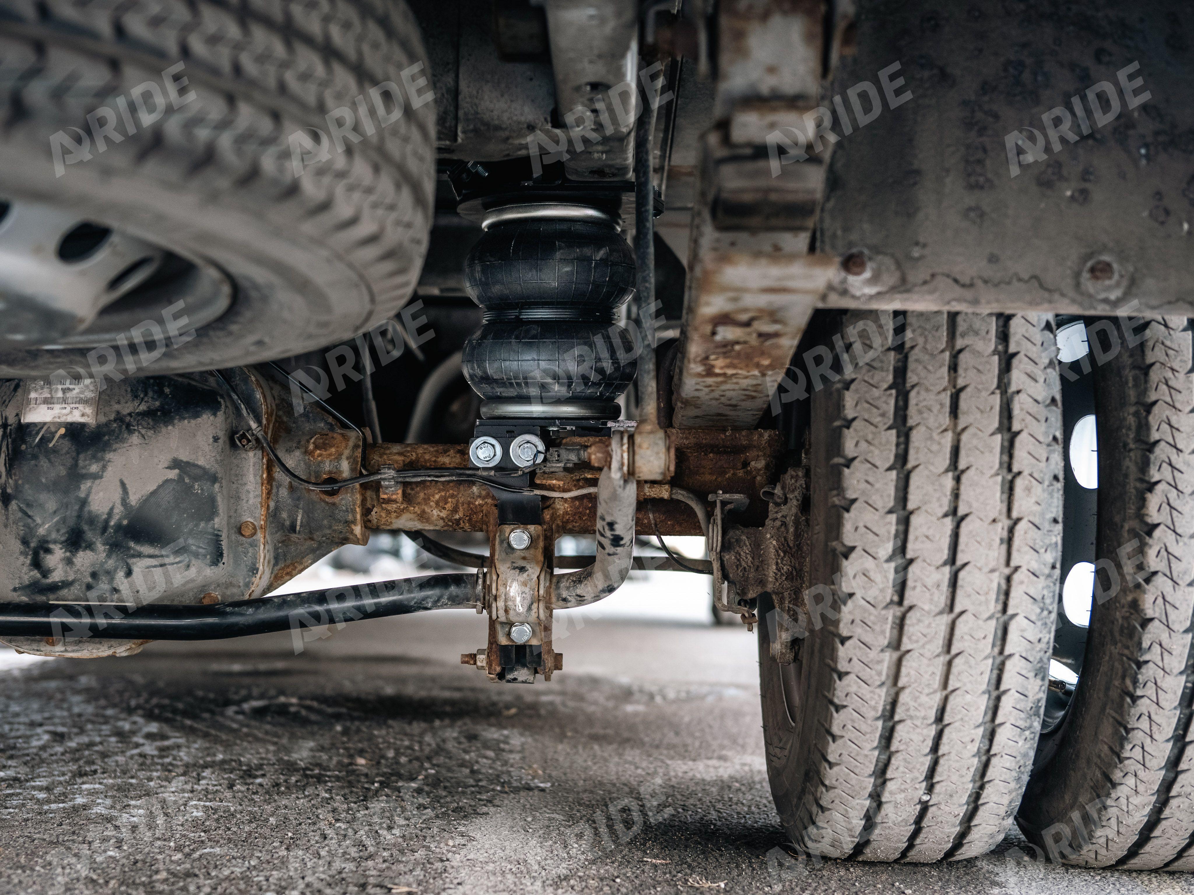 Установка ещё одного комплекта вспомогательной пневматической подвески на автомобиль Форт Транзит. Данный коммерческий транспорт оборудован большой и тяжёлой "будкой", соответственно идёт большая нагрузка на задний рессорный пакет. Для компенсации нагрузки, приходящейся на рессоры, на автомобиль были установлены вспомогательные пневмоподушки Арайд 180D1. Каждая пневморессора способна компенсировать до 2000 килограмм нагрузки.
