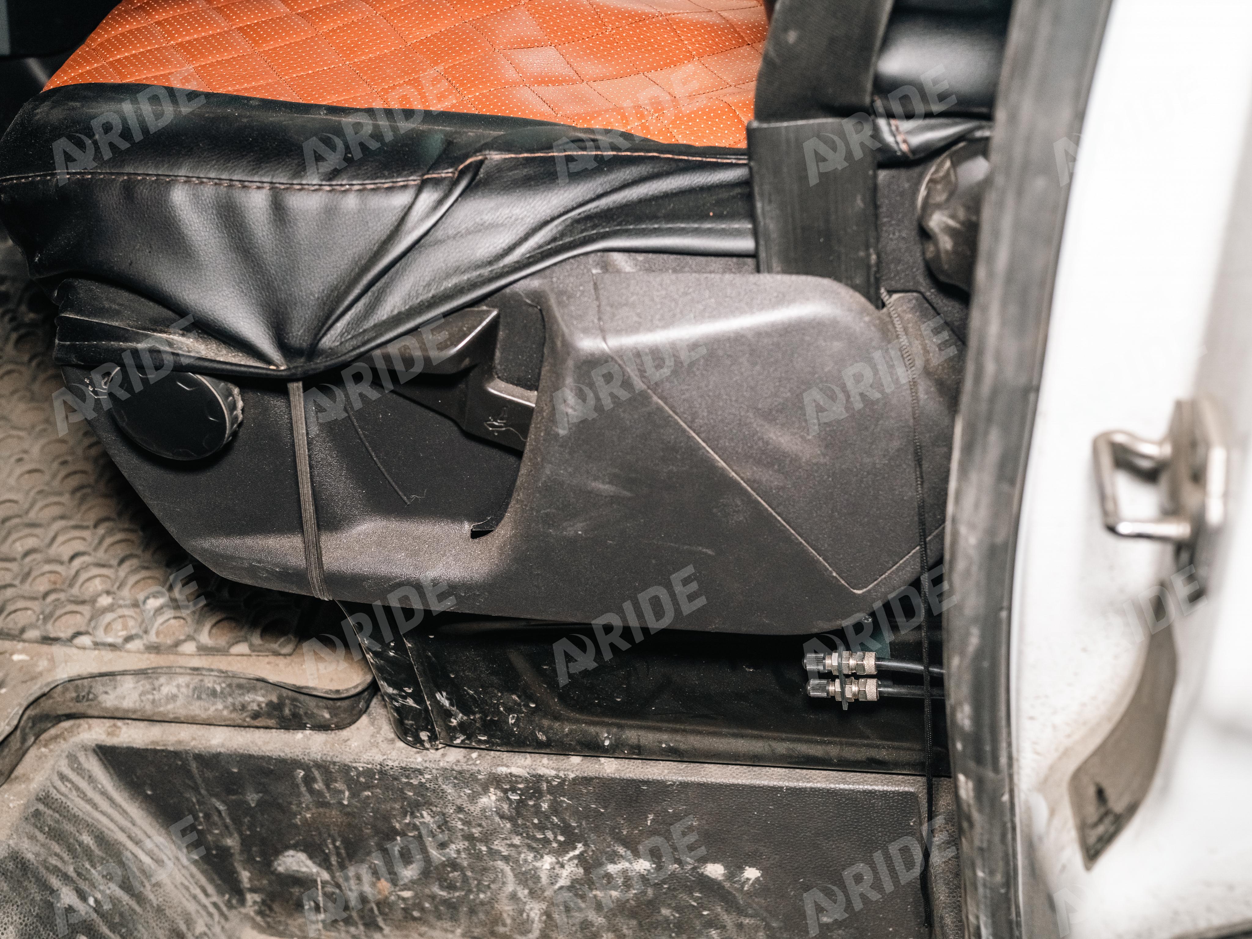 Управление/регулировка давления в подушках реализована за счёт двух ниппелей подкачки, которые идут в комплекте. По желанию клиента, оба ниппеля были выведены слева от водительского сидения.
