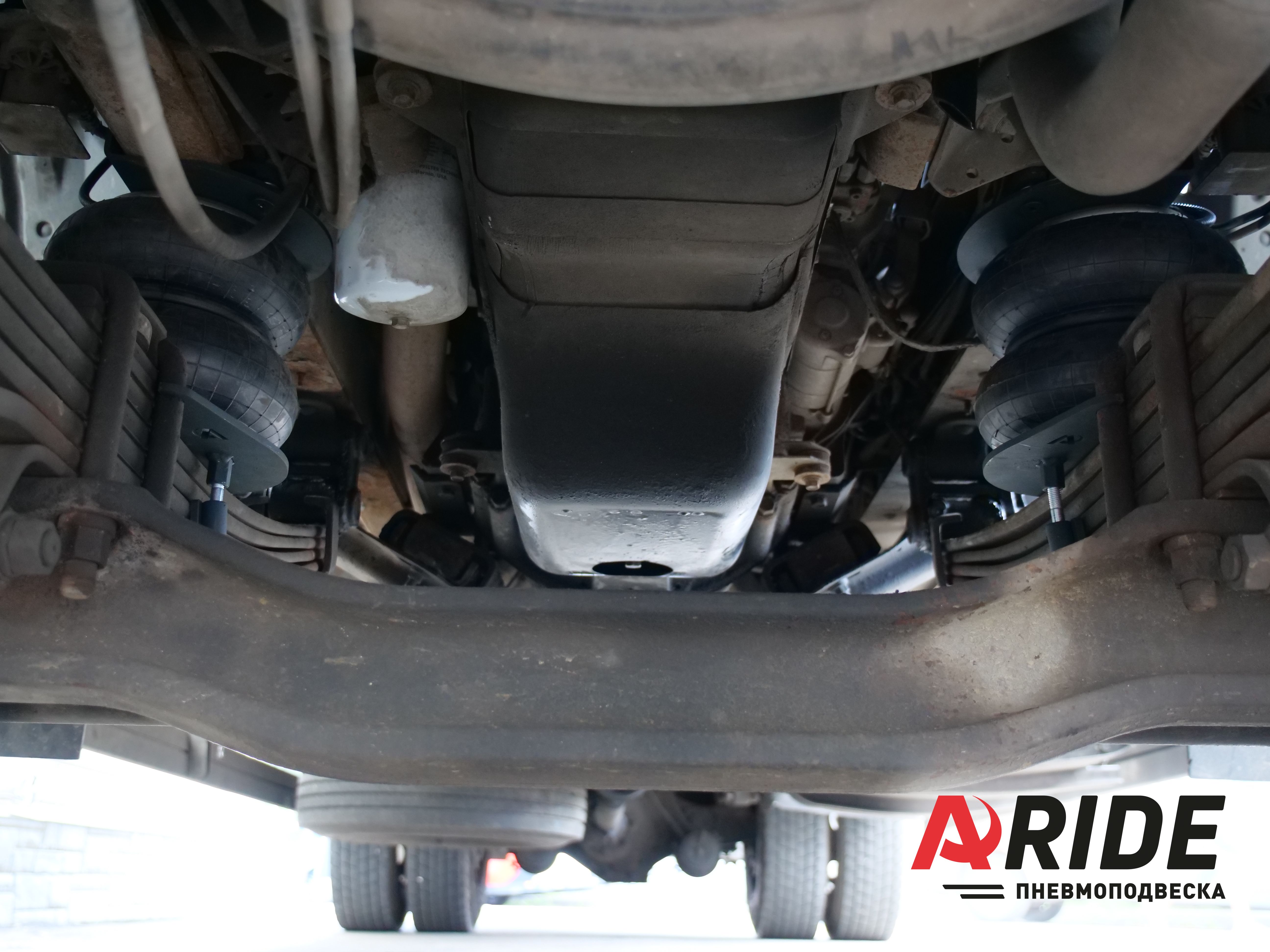 Пневмоподушки устанавливаются совместно с кронштейнами, изготовленными специально под данный автомобиль. Кронштейны устанавливаются на переднюю часть рамы, а так же на рессорный пакет, ближе к балке. За счёт такой большой подъёмной силы, рессоры разгружаются, а соответственно становятся меньше подвержены износу и поломке.