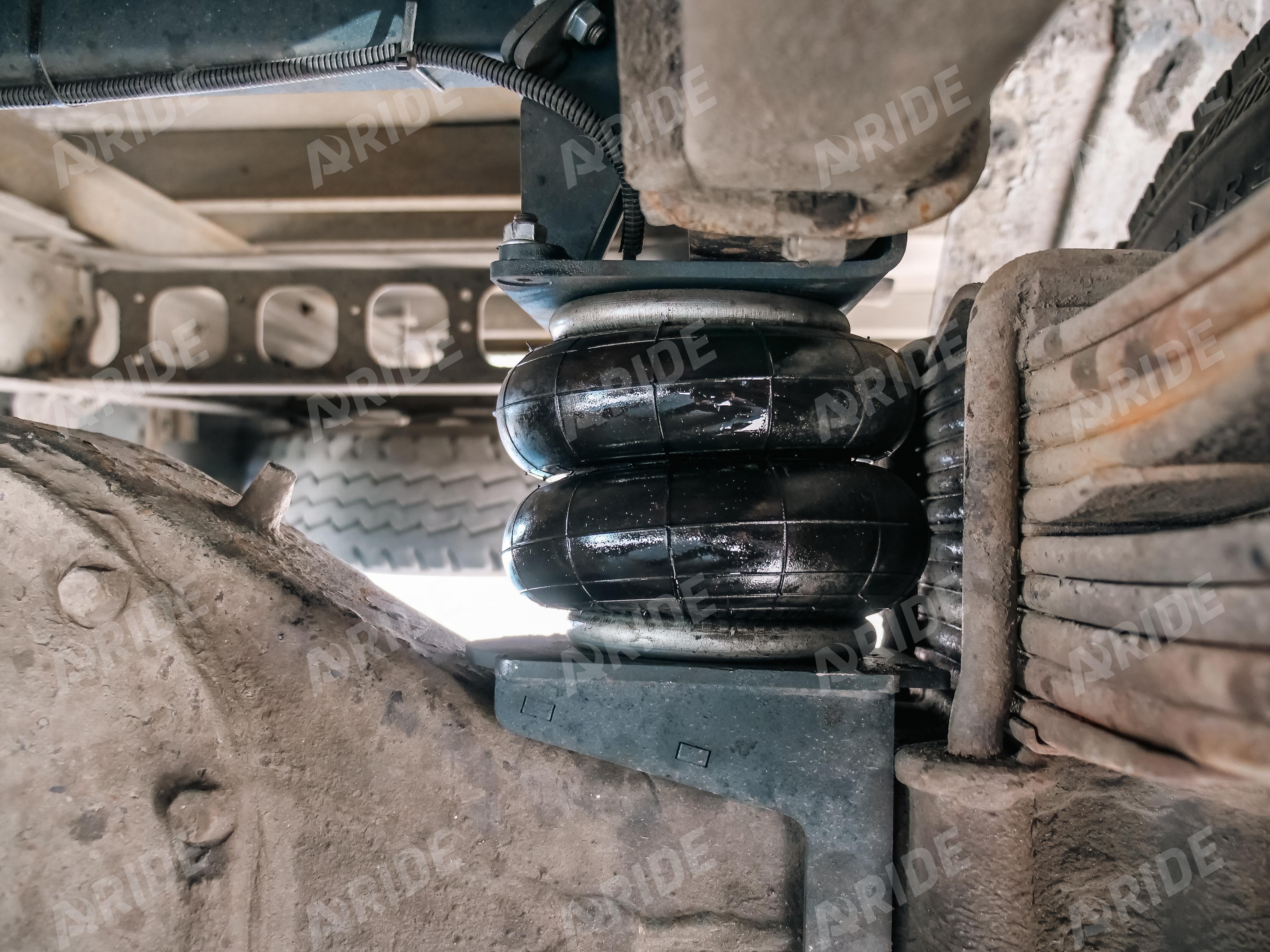 Так как автомобилю более двадцати лет, его заводской рессорный пакет уже сильно изношен. Для восстановления заводских параметров по грузоподъёмности, были установлены два комплекта вспомогательной пневматической подвески.