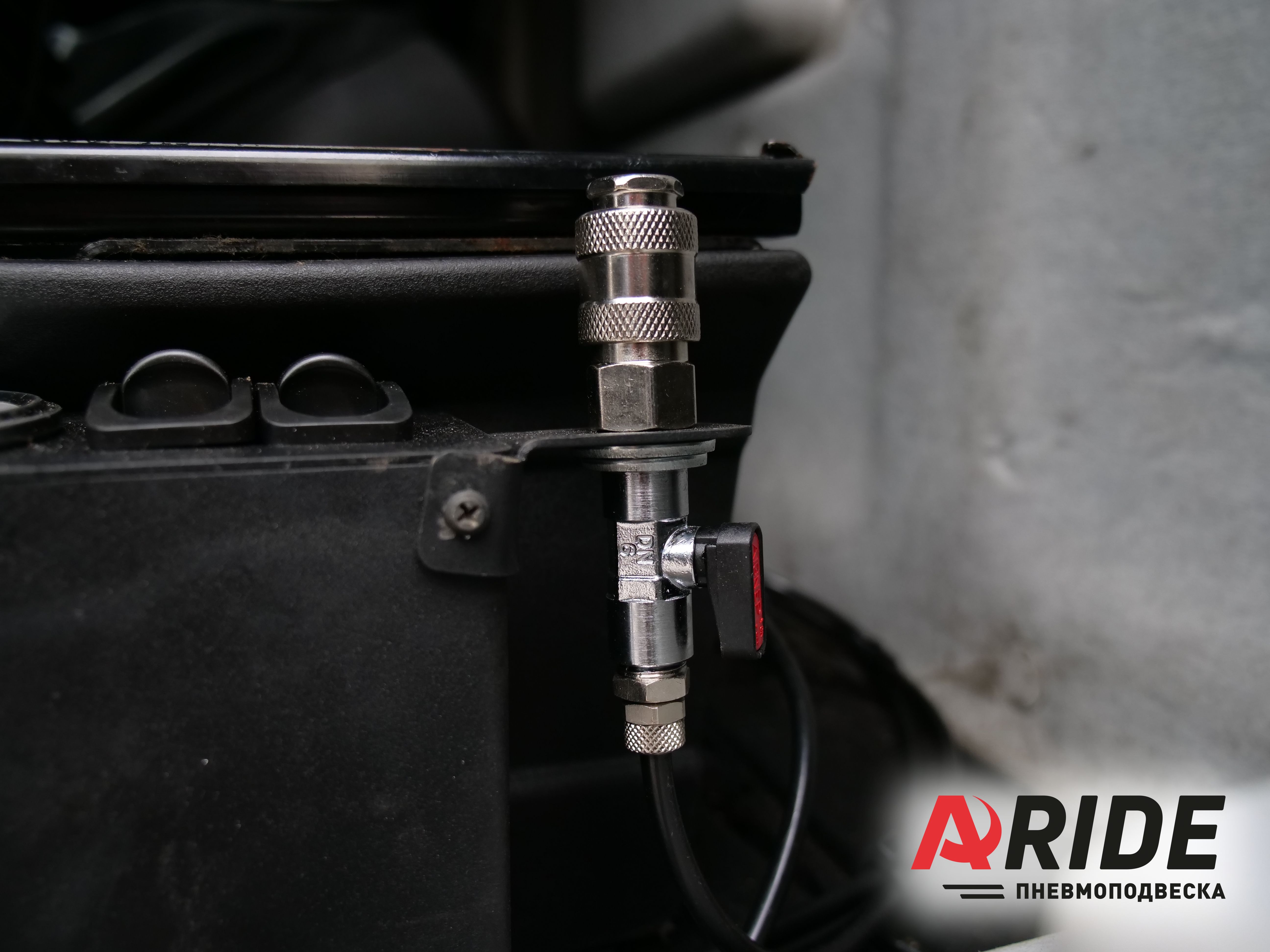Так же на автомобиль была дополнительно установлена система подкачки колёс. Её быстросъём был установлен рядом с блоком управления.