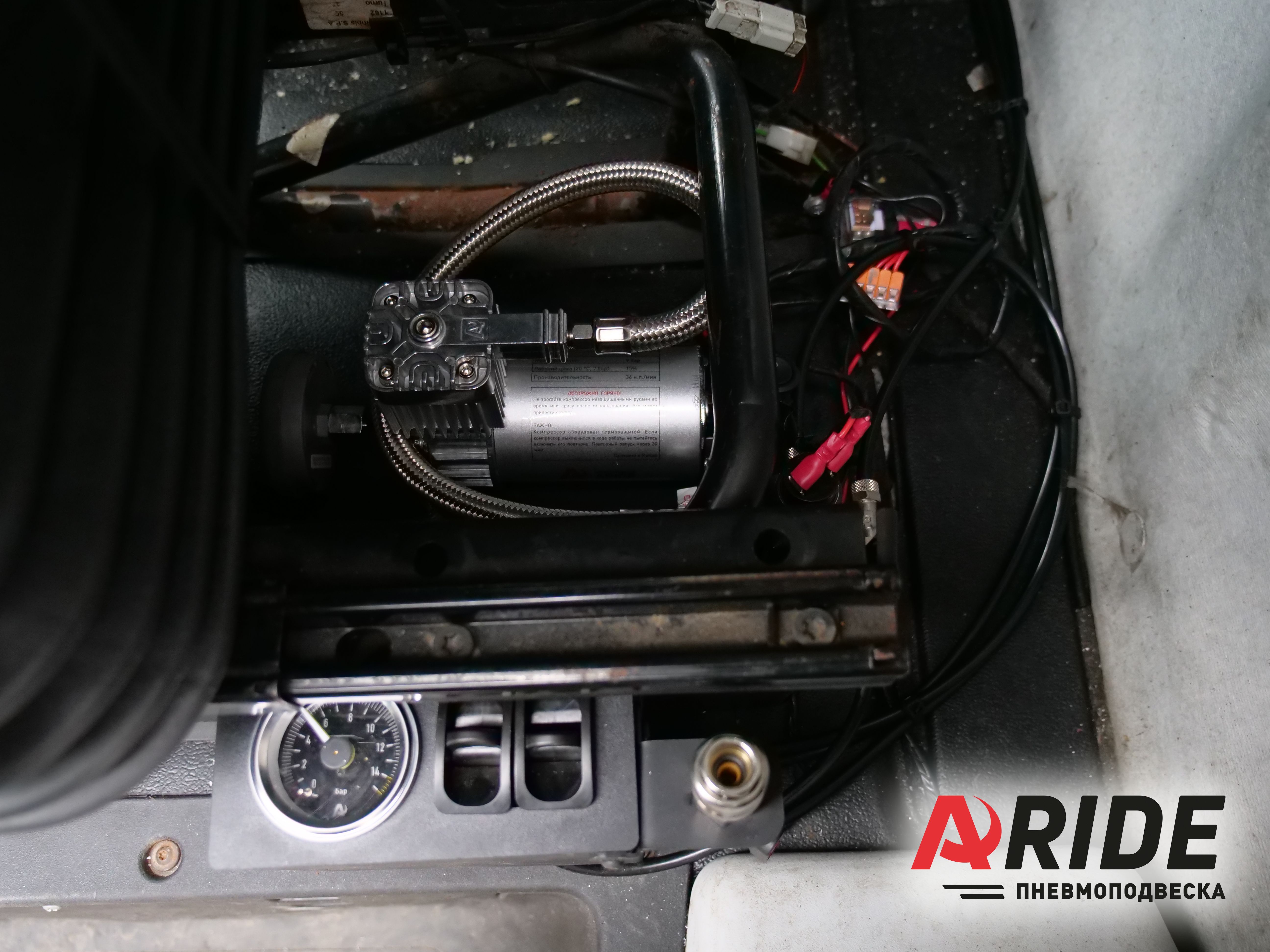 Ресивер устанавливается под рамой, а компрессор и блок управления монтируются в салоне.