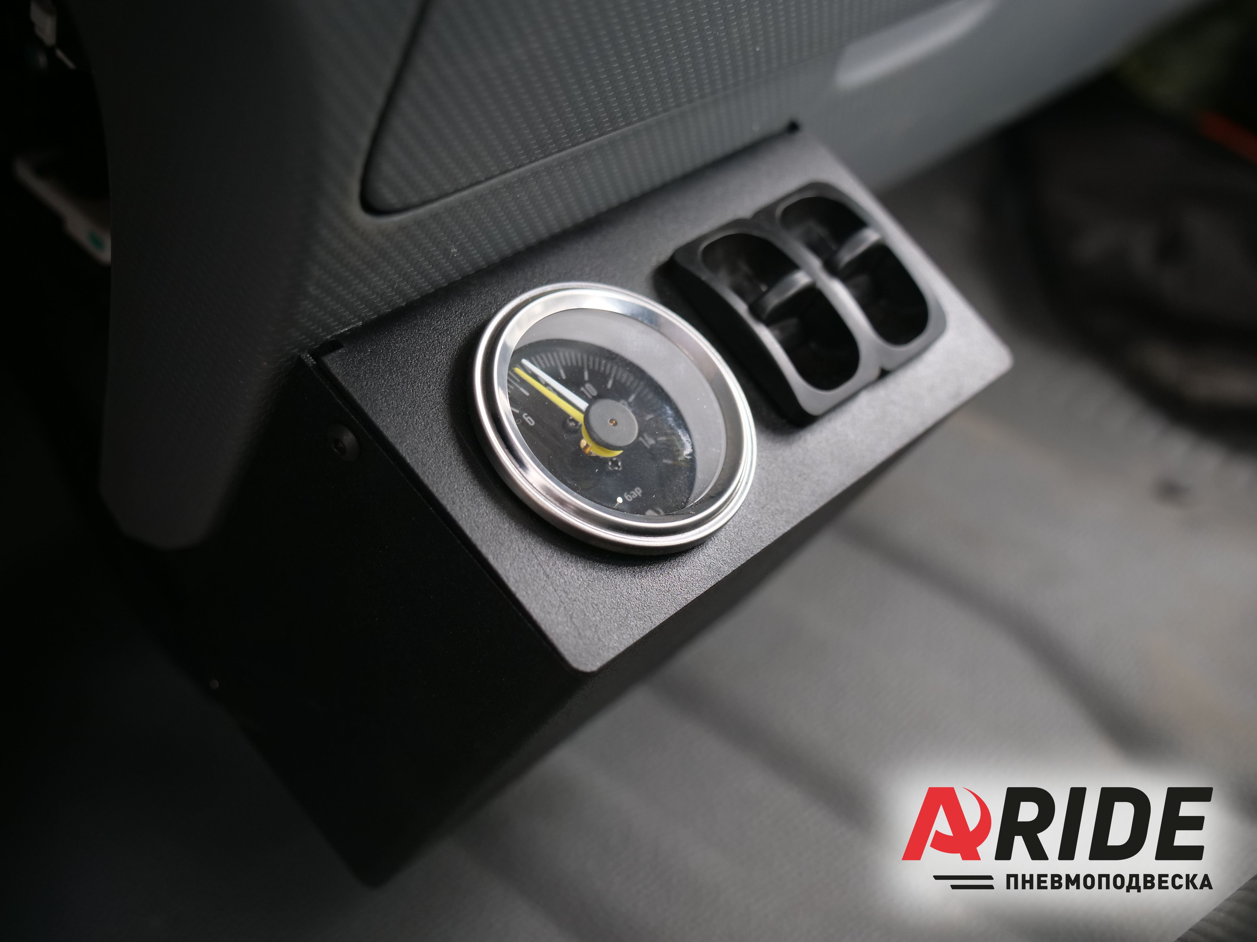 Регулировка давления реализована за счёт системы, которая подключается к заводским ресиверам. Отследить давление возможно по двухстрелочному манометру, а отрегулировать, за счёт двух пневматических клавиш.