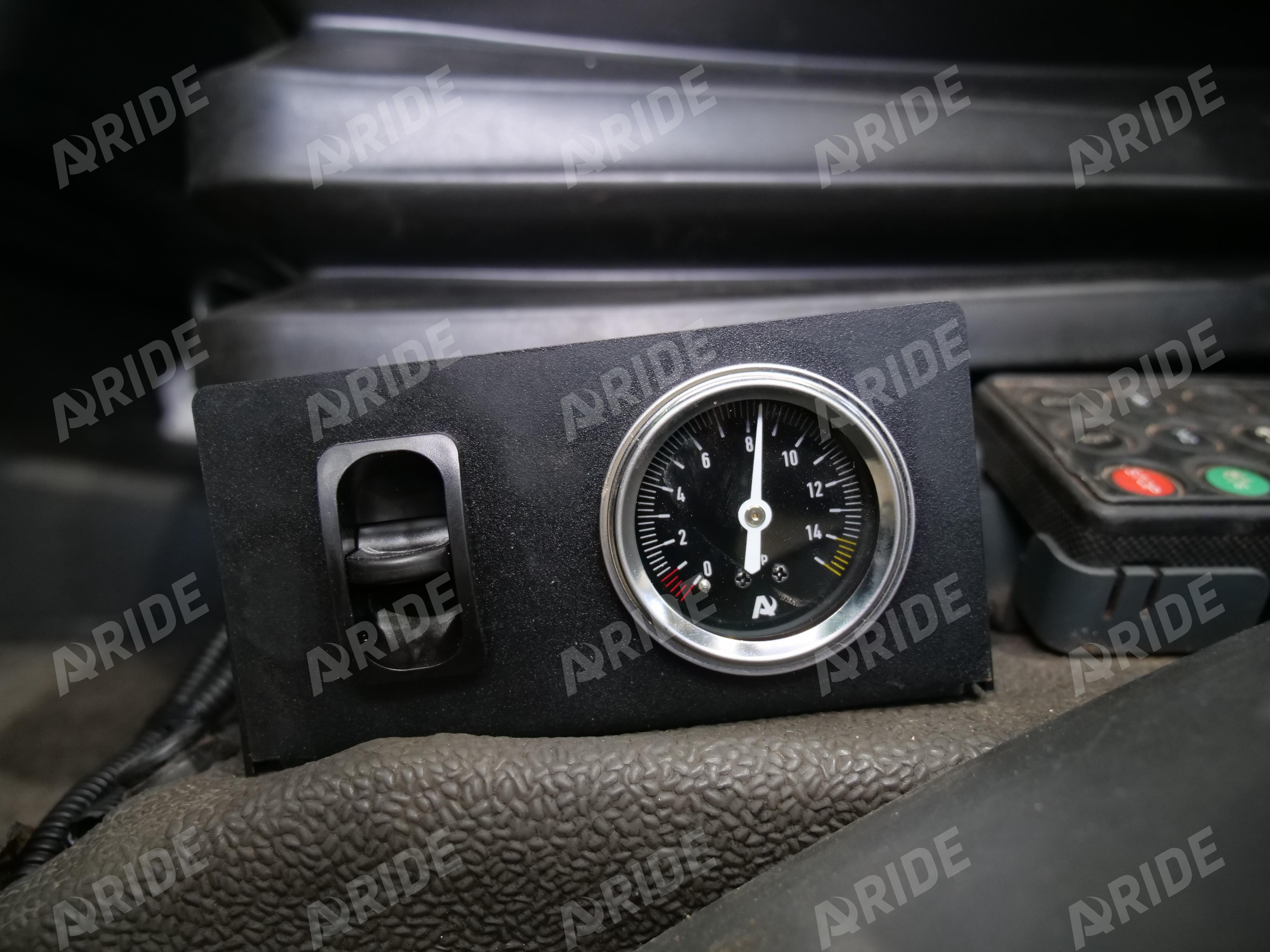 Клиентом было принято решение по установке дополнительных пневматических подушек. Данный комплект пневмоподвески устанавливается в дополнение к рессорному пакету и работает в паре с ним. Установленные пневматические подушки компенсируют до 3000 килограмм нагрузки с передней оси. Характерным плюсом вспомогательной пневматической подвески является то, что у водителя всегда есть возможность регулировки жёсткости, грузоподъёмности и клиренса. Данная регулировка обеспечивается при помощи специальной системы управления. Данная система состоит из одного контура и подключается к заводской воздушной системе.