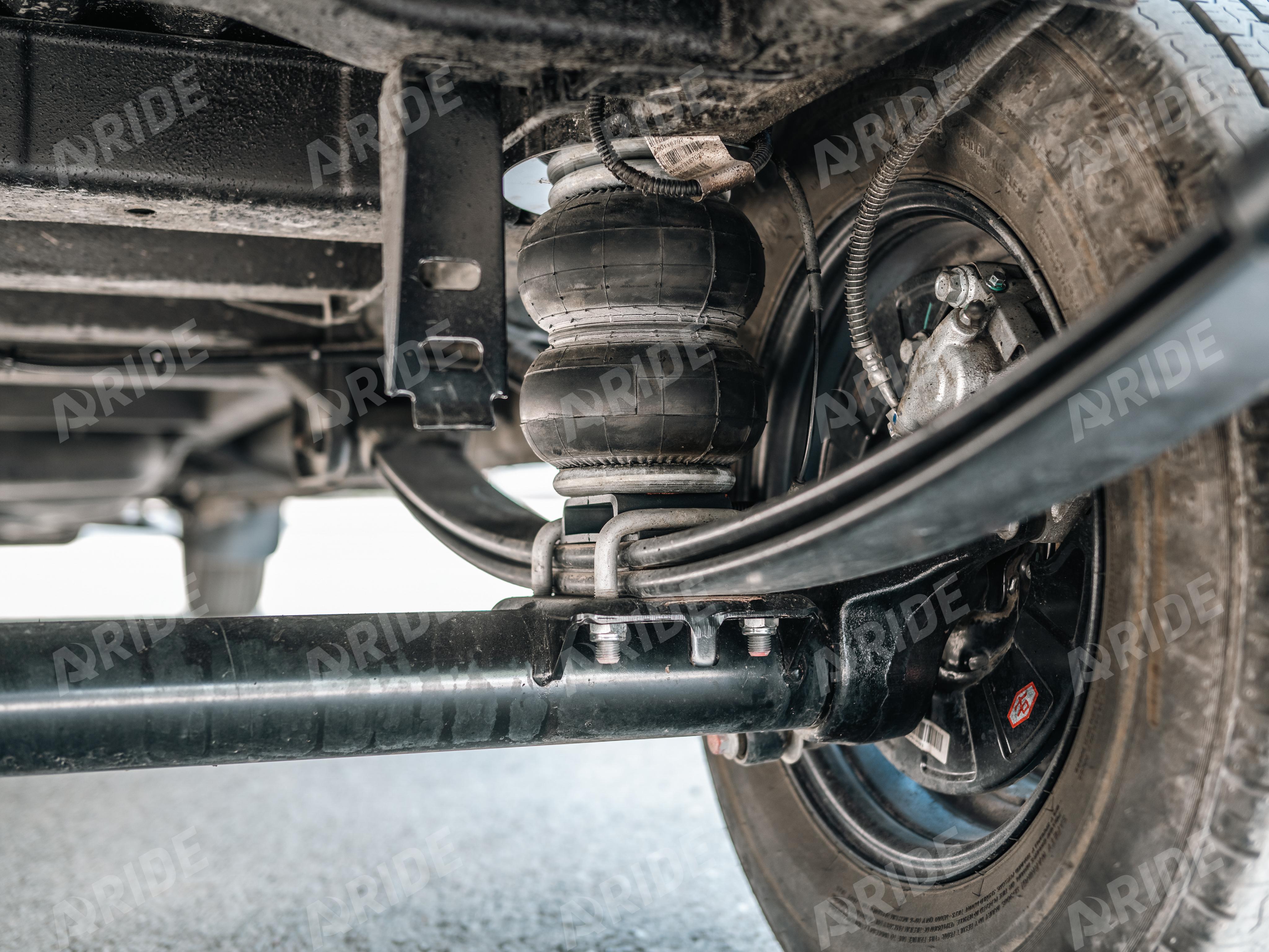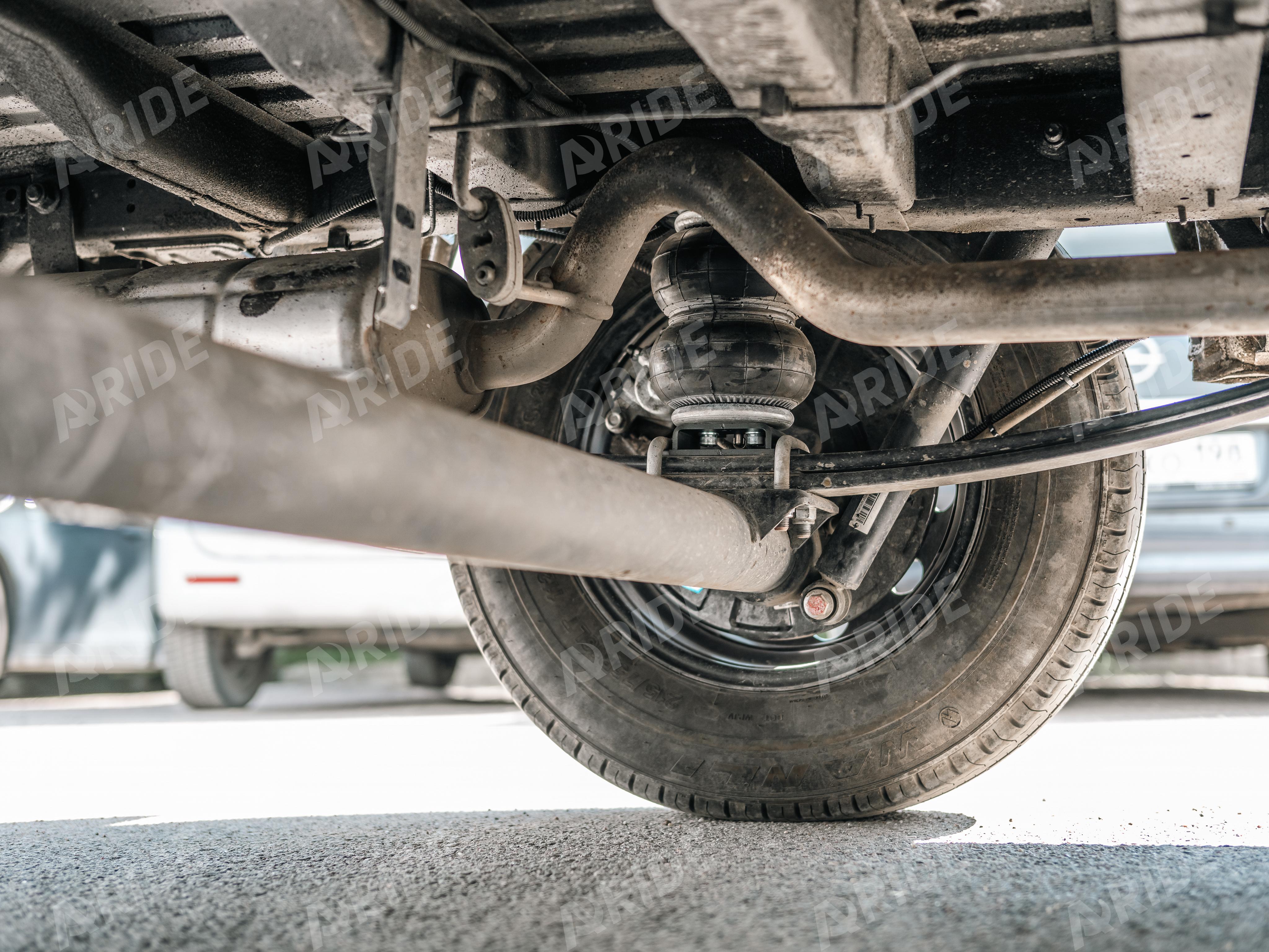 Нашими конструкторами и мастерами установщиками был внедрён комплект вспомогательной пневматической подвески на заднюю ось, который был установлен в дополнение к рессорам. Комплект включает в себя пневматические подушки 180D1, каждая такая пневматическая подушка способна компенсировать до 1500 килограмм, при давлении в 8 атмосфер. Данные пневмоподушки имеют большой объём воздуха, что способствует не только высокой грузоподъёмности, а так же плавности хода при эксплуатации.