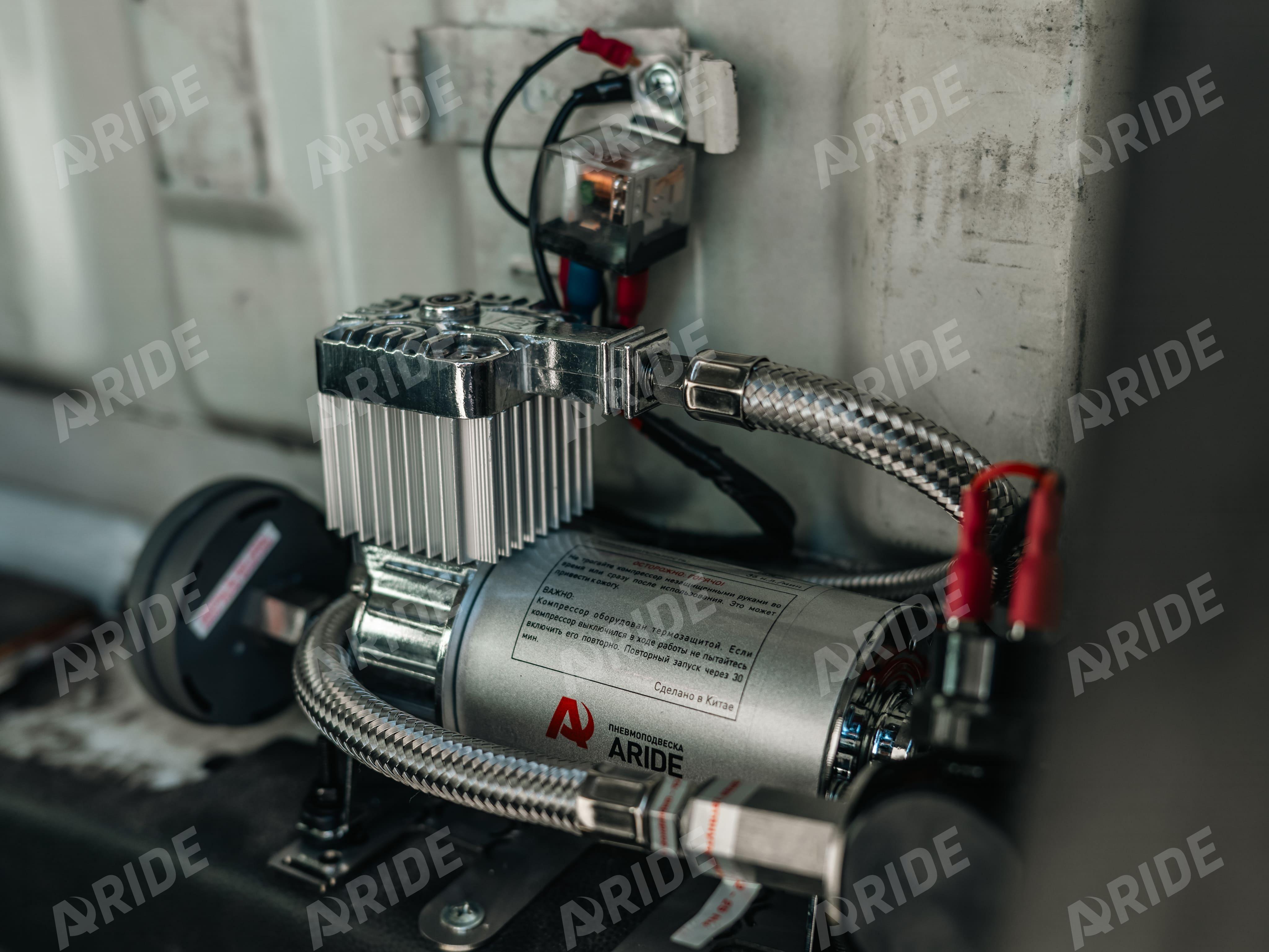 Комплект был уставлен на заднюю ось автомобиля, в дополнение к заводским рессорам. Пневматические подушки крепятся за счёт специальных кронштейнов к раме и к мосту автомобиля. Долгое время наши конструктора разрабатывали данный комплект, чтобы довести его до совершенства. Только за последние пол года было более 10 модификаций. Были перепробованы различные типы пневматических подушек, различные вариации кронштейнов крепления. Сложность заключалась в малом ходу подвески и ограниченном пространстве для размещения пневмоподушек. По итогу удалось реализовать качественный комплект на пневматических подушках 180D1.