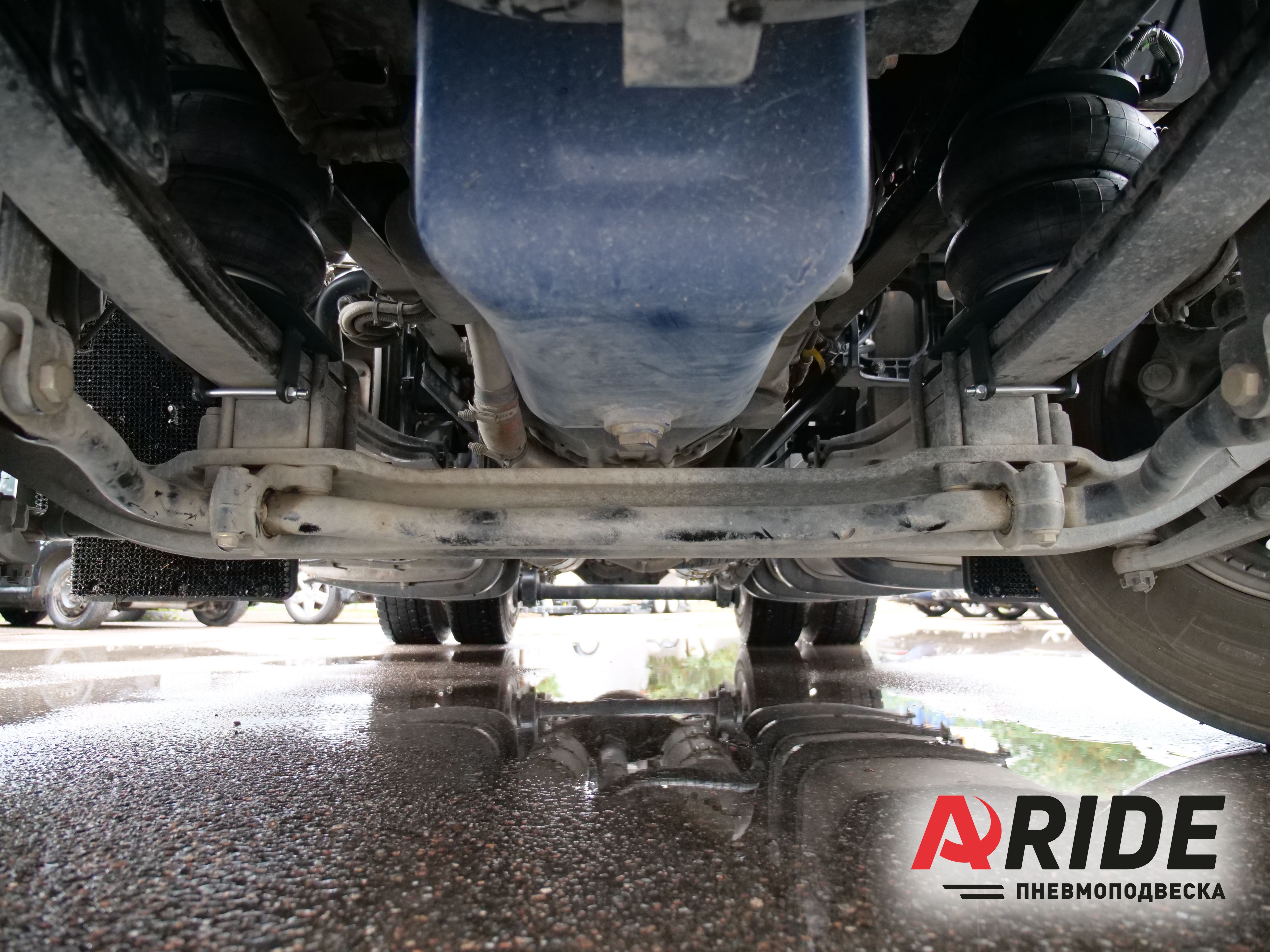 Подушки устанавливаются в дополнение к переднему рессорному пакету. Монтаж вспомогательных пневмоэлементов происходит за счёт специальных кронштейнов, которые были разработаны исключительно под данный автомобиль. Комплект состоит из верхних и нижних кронштейнов. Верхние кронштейны крепятся к раме через заводские отверстия в ней. Нижние кронштейны устанавливаются на рессорный пакет, максимально близко к передней балке, для того чтобы не создавать дополнительное давление на уязвимые части рессор. Такое расположение пневмоэлементов выбрано не с проста. Подушки ставятся рядом с балкой, для того чтобы сохранить заводской отбойник, который предотвращает всевозможные ударные непредвиденные нагрузки.