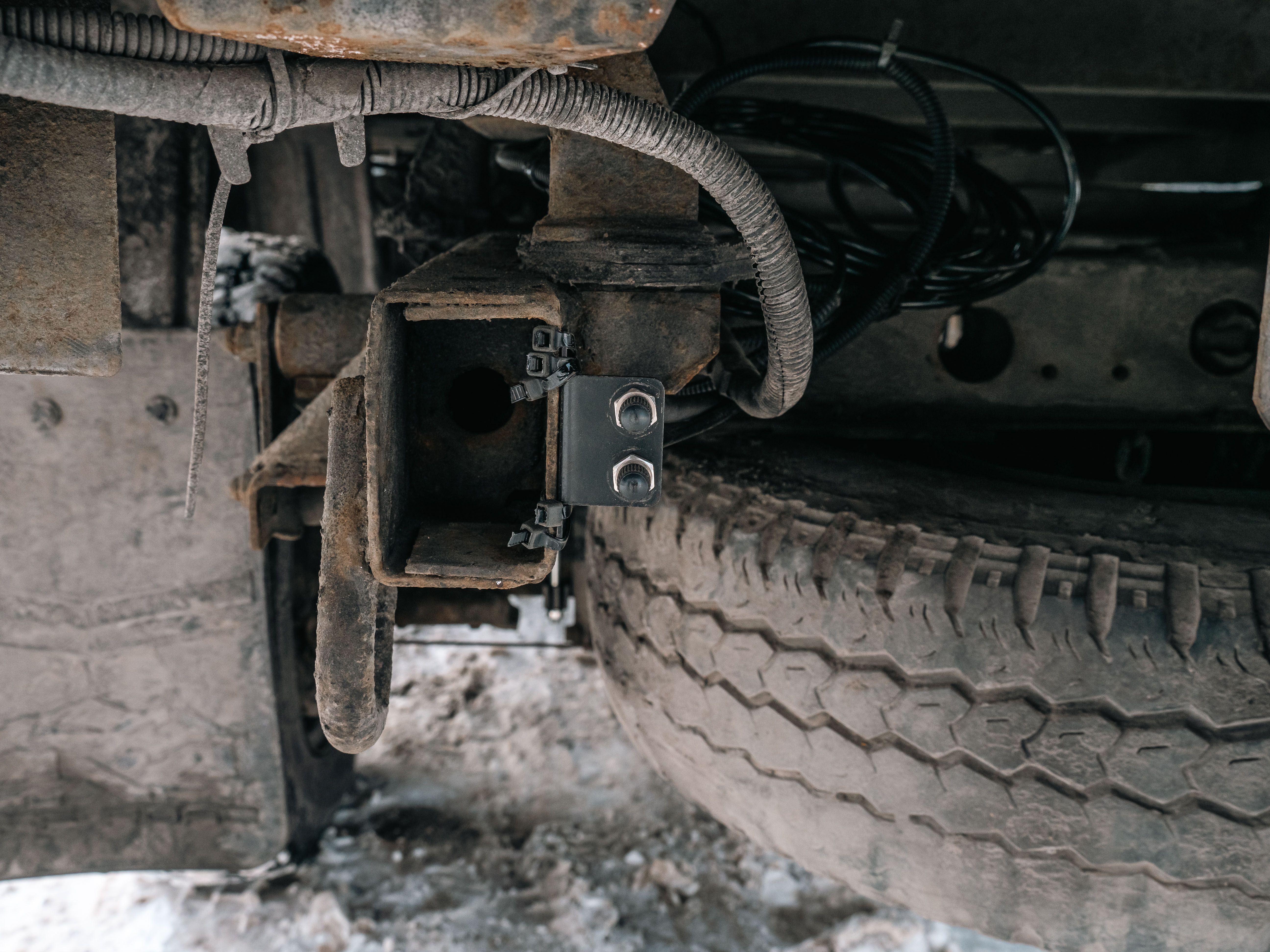 Регулировка давления осуществляется за счёт двух ниппелей подкачки, которые по просьбе клиента были выведены на раму автомобиля (временное решение), для дальнейшей установки системы управления из салона.