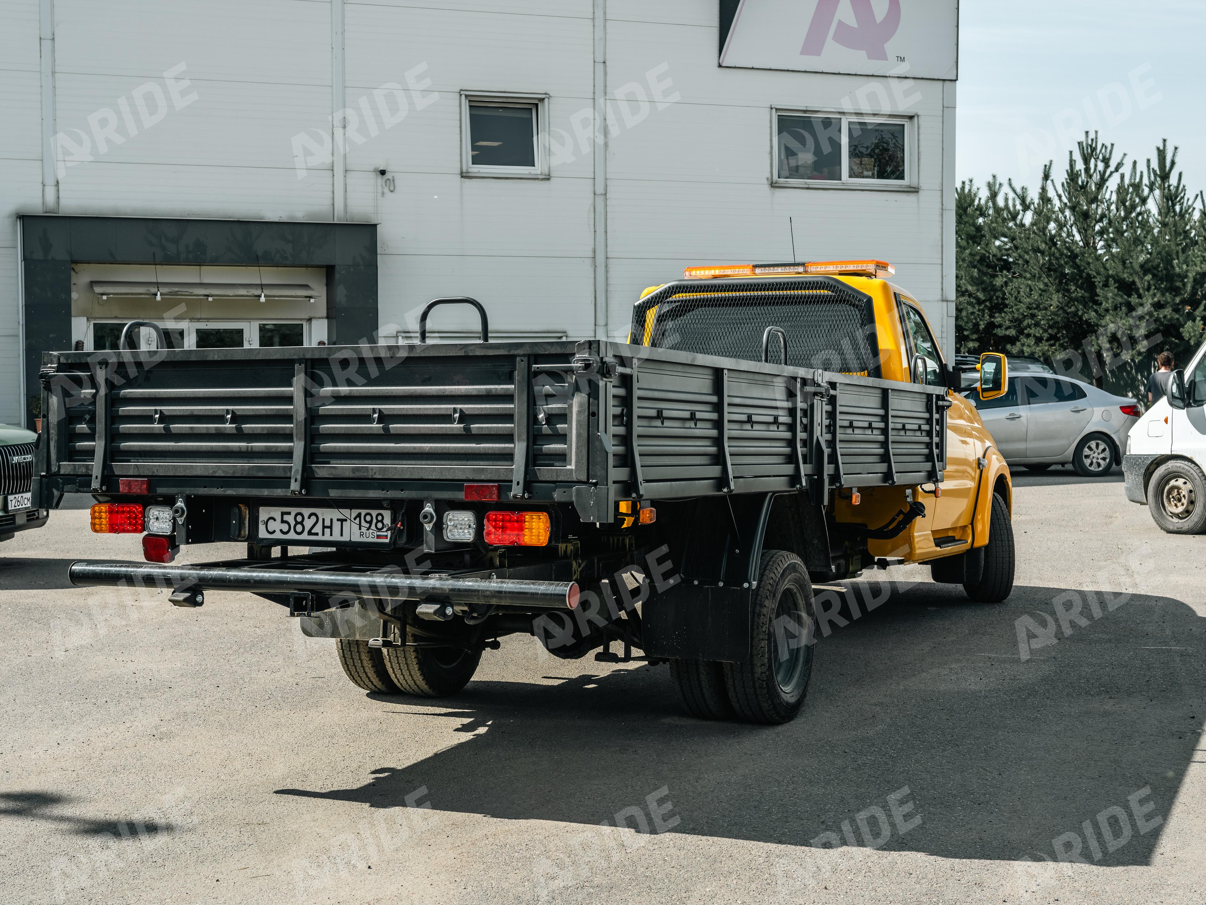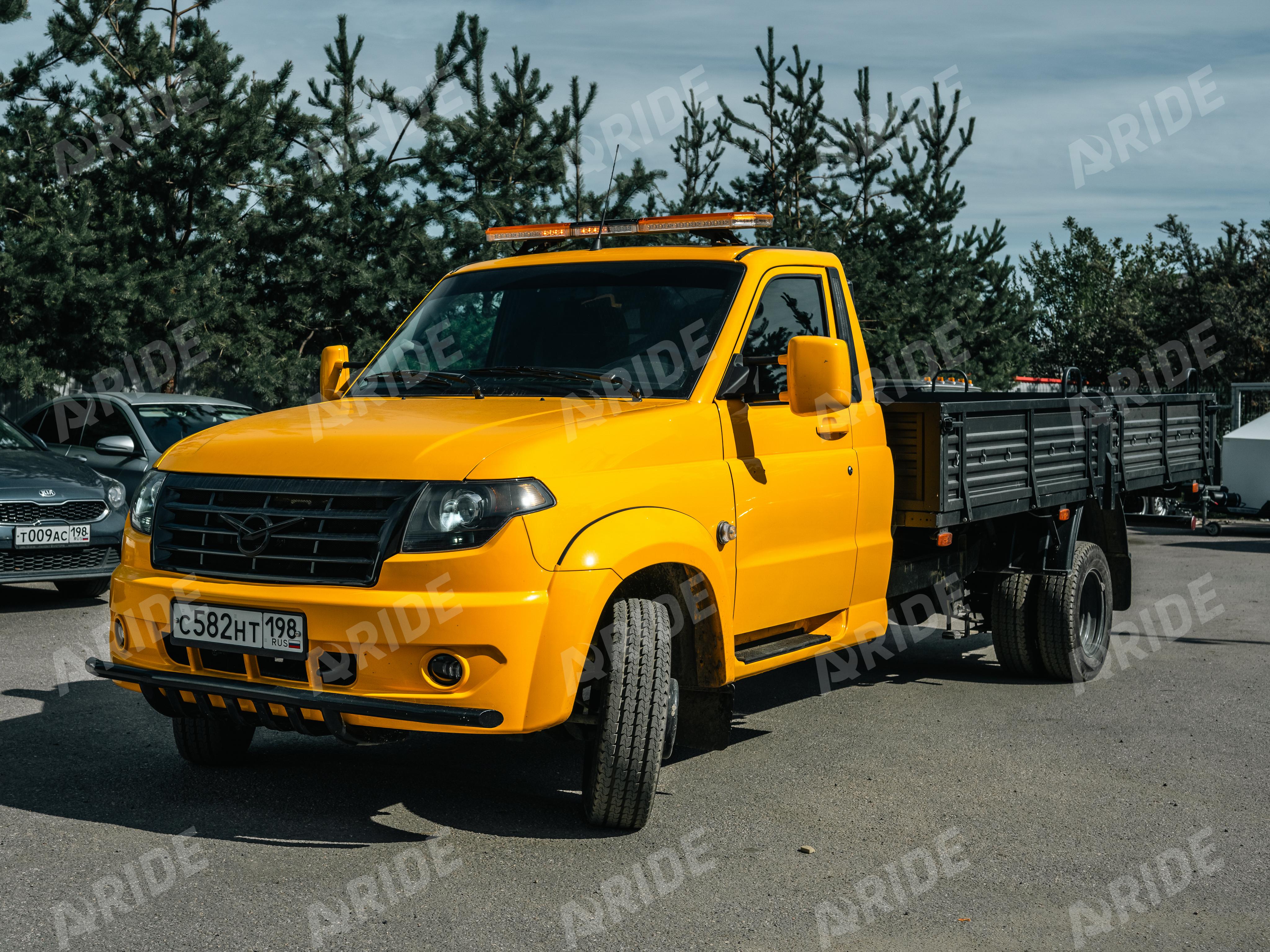 Проект по установке вспомогательной пневматической подвески на заднюю ось автомобиля УАЗ Профи. Автомобиль совсем новый, его пробег составляет 300 километров. Но клиент максимально кропотливо и тщательно подошёл к подготовке автомобиля, перед тем, как запустить его в работу. Автомобиль был полностью перекрашен, удлинена база, установлено большое множество дополнительного оборудования, для удобства и комфорта.