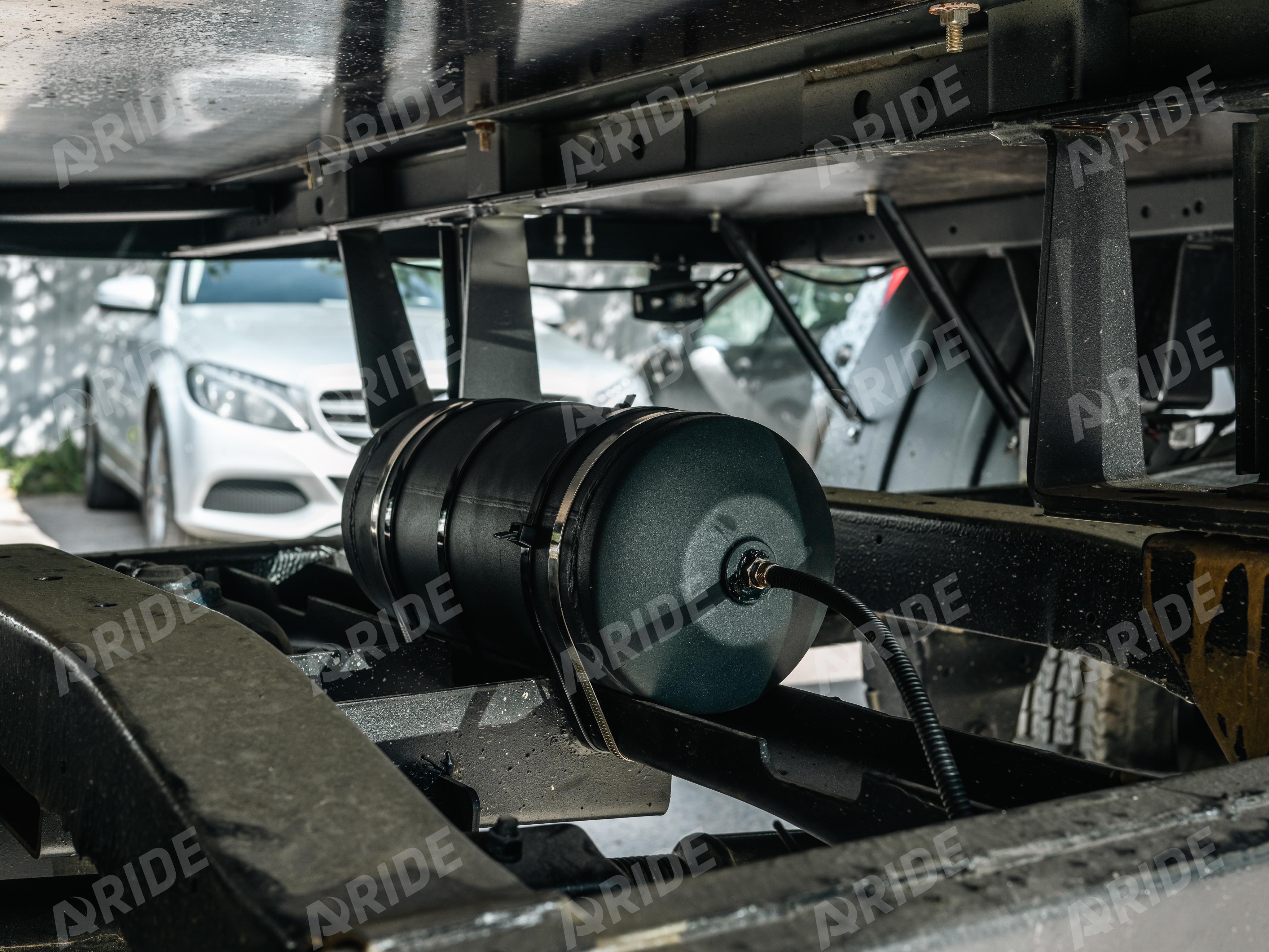 Размещение подушек обусловлено самым надёжным, силовым местом опоры - между рамой и рессорным пакетом. Для придания дополнительной жёсткости, верхние кронштейны комплекта связаны между собой поперечным усилителем.