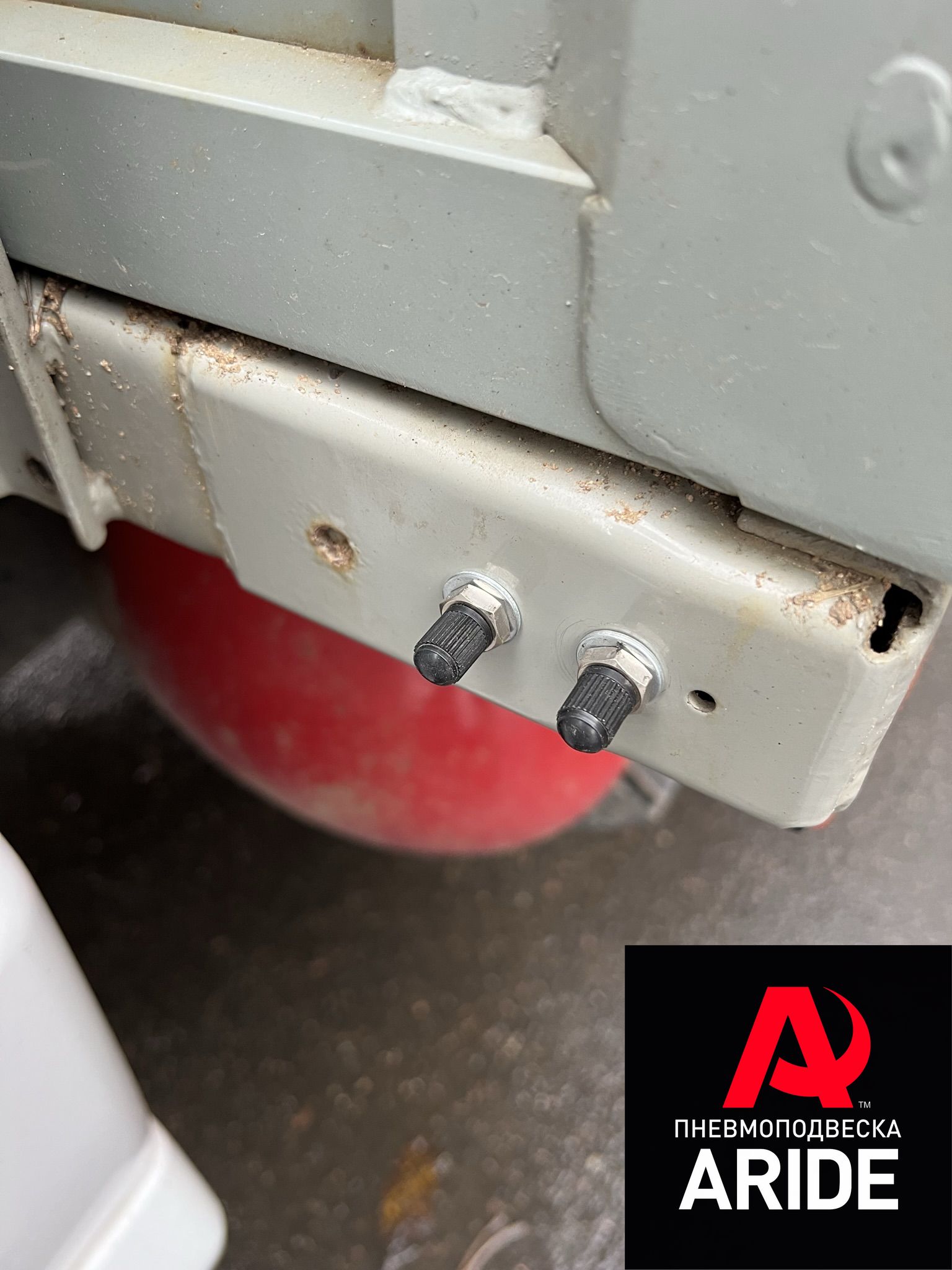 Пневмподушки устанавливаются на автомобиль при помощи специальных кронштейнов. Верхние кронштейны крепятся к раме, так же дополнительно они связаны между собой поперечным усилителем, который сводит к минимуму вращающий момент, возникающий на кронштейнах, при работе пневмоэлементов. Снизу подушка крепится к мосту так же при помощи кронштейнов. Они устанавливаются на пластину приваренную к мосту и притягиваются к ней за счёт двух обхватов. Пневмолиния (трубка) от подушек, прокладывается вдоль всей рамы, до момента подключения её с системой управления, либо же с ниппелями, как в данном проекте. Дополнительно трубка прокладывается в специальной негорючей разрезной гофре, для её максимальной защиты.