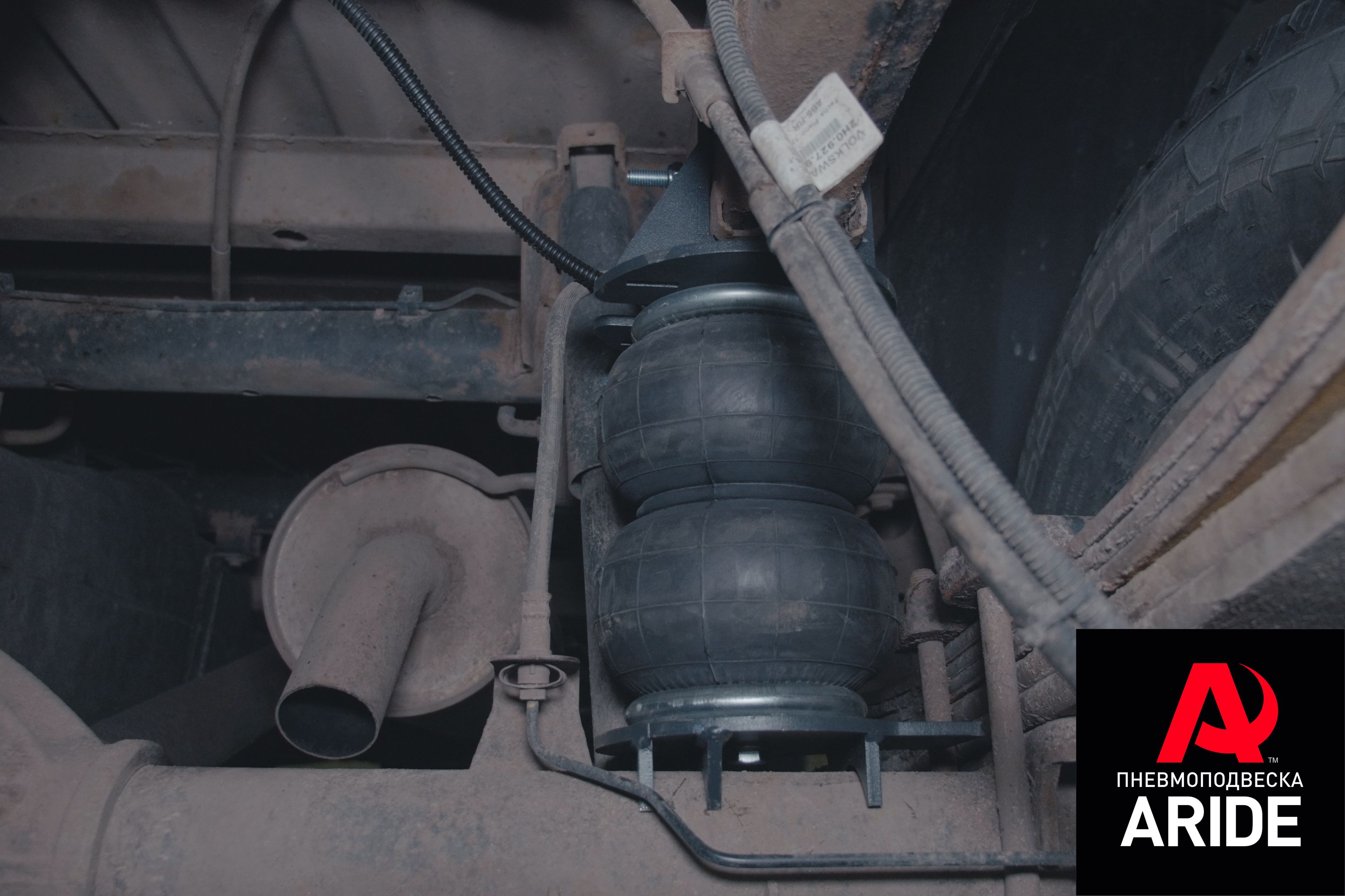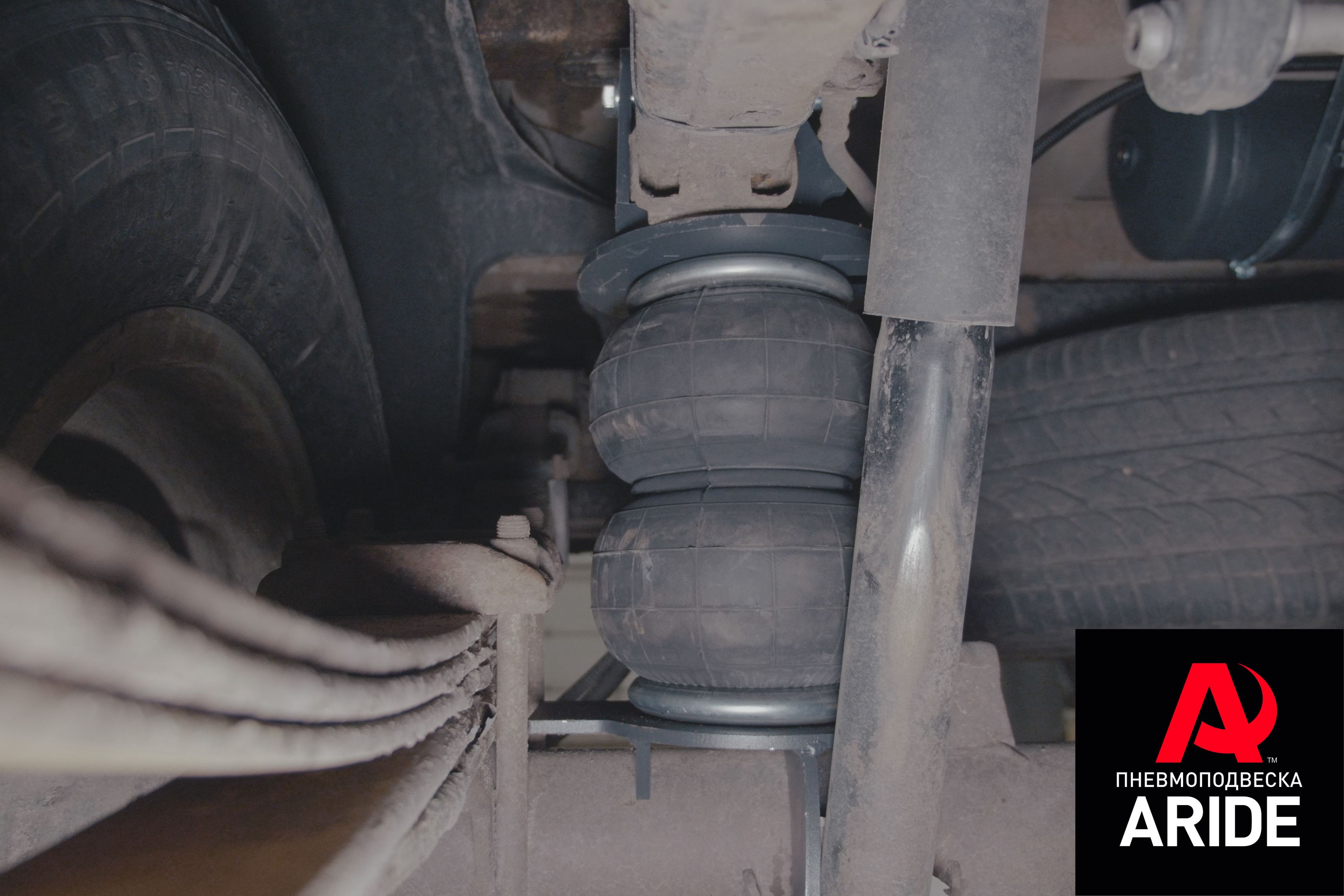 Для решения такой проблемы, нашей компанией был давно разработан и внедрён в производство комплект вспомогательной пневмоподвески. Комплект устанавливается, как это зачастую принято, между мостом и рамой. Верхний кронштейн плотно крепится к раме, обхватывая её с обоих сторон и притягивается болтом насквозь, через заводское отверстие. Нижняя часть комплекта устанавливается на мост, и плотно крепится к заводским проушинам для крепления амортизатора.