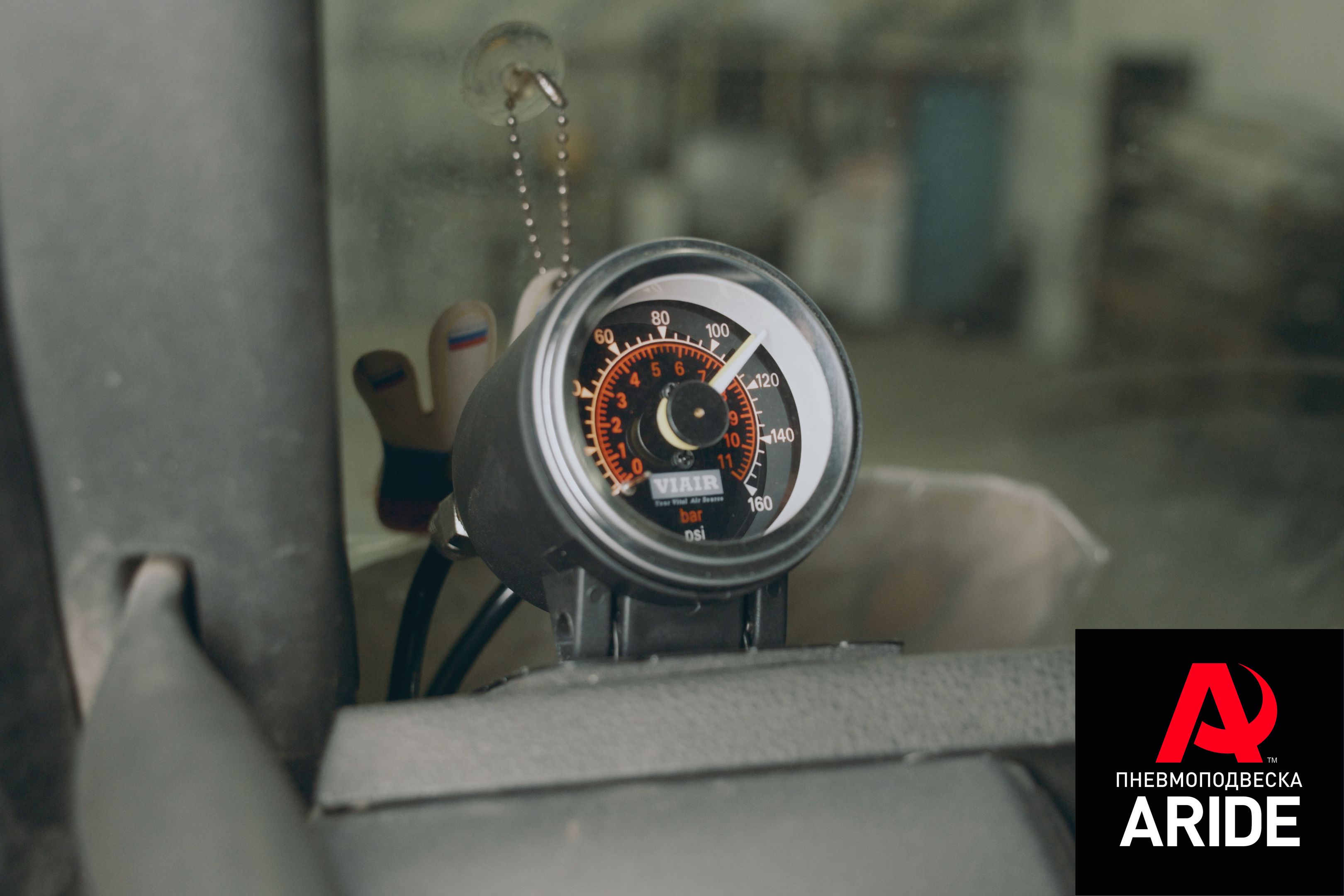 А для отслеживания давления в подушках, в левый верхний угол торпедо, нашими мастерами был установлен двухстрелочный манометр с подсветкой. Подсветка работает при включении зажигания.