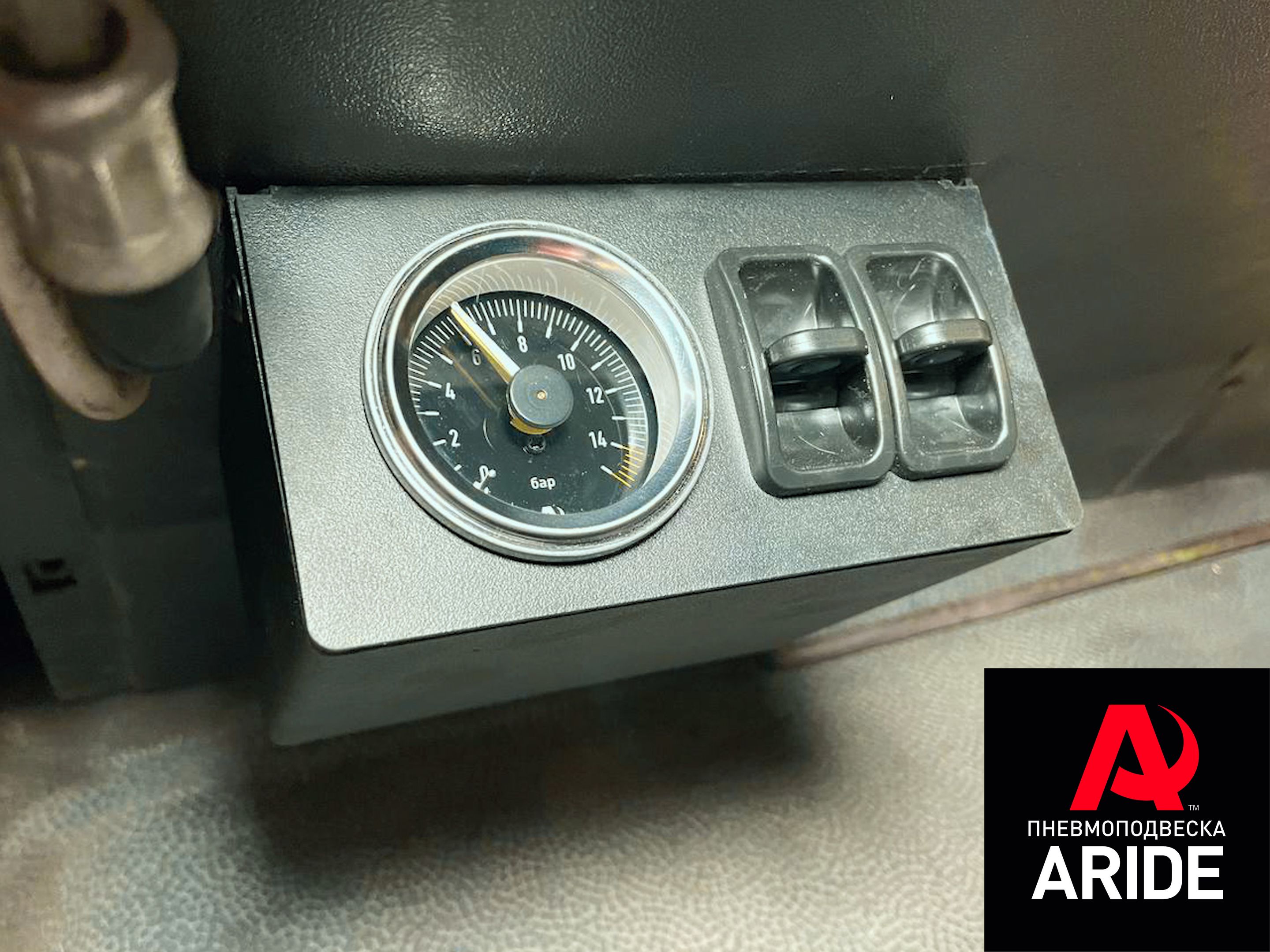 Отслеживание и регулировка давления в правом и левом контуре осуществляется при помощи двух пневмоклавиш и одного двухстрелочного манометра с подсветкой. Манометр и пневмоклавиши расположены в специальном блоке, который был установлен на центральной консоли в нижней её части.