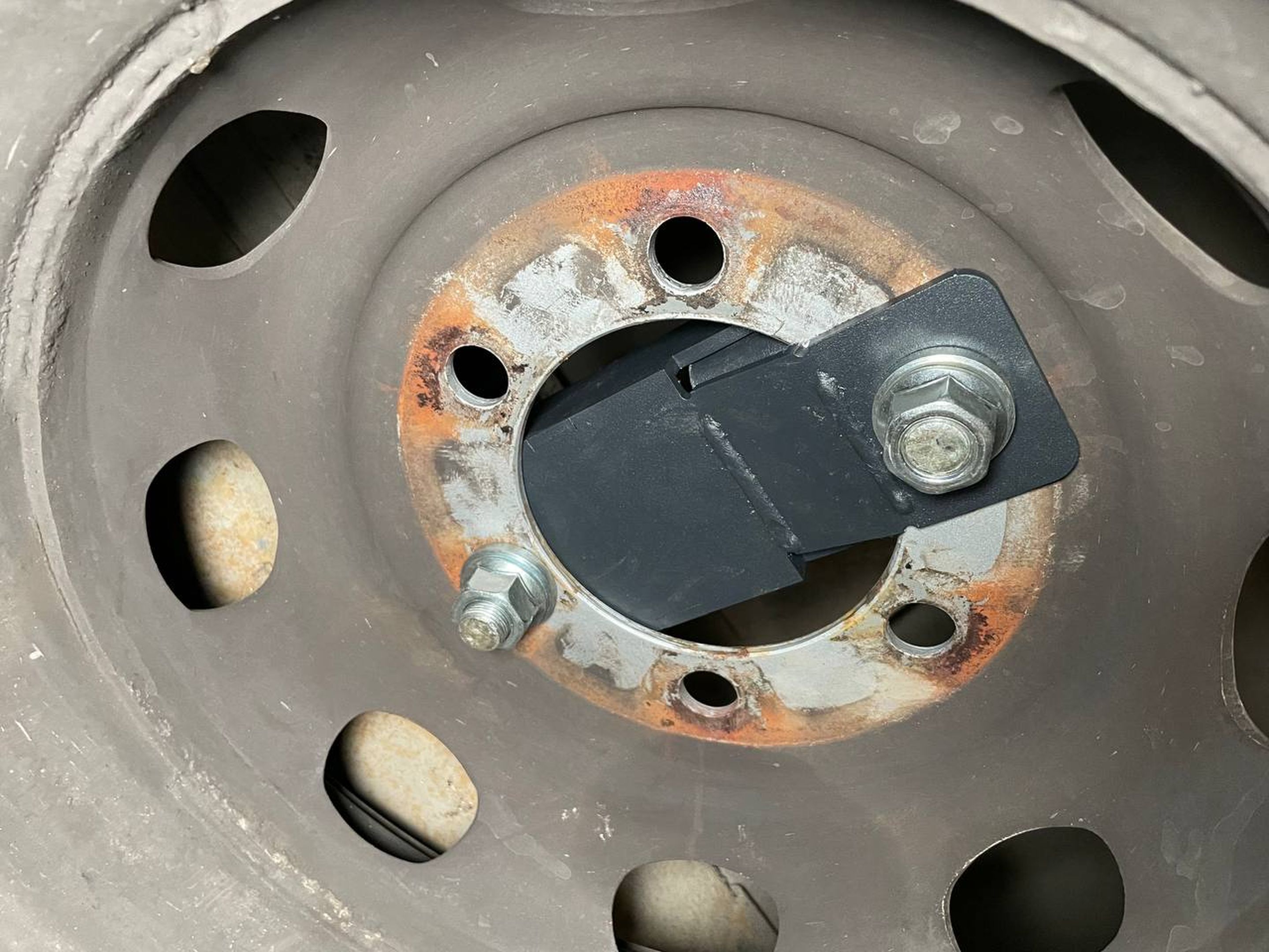 Чтобы избежать того момента, что запасное колеса могут украсть, наш кронштейн оборудован специальными проушинами для закрепления навесного замка.