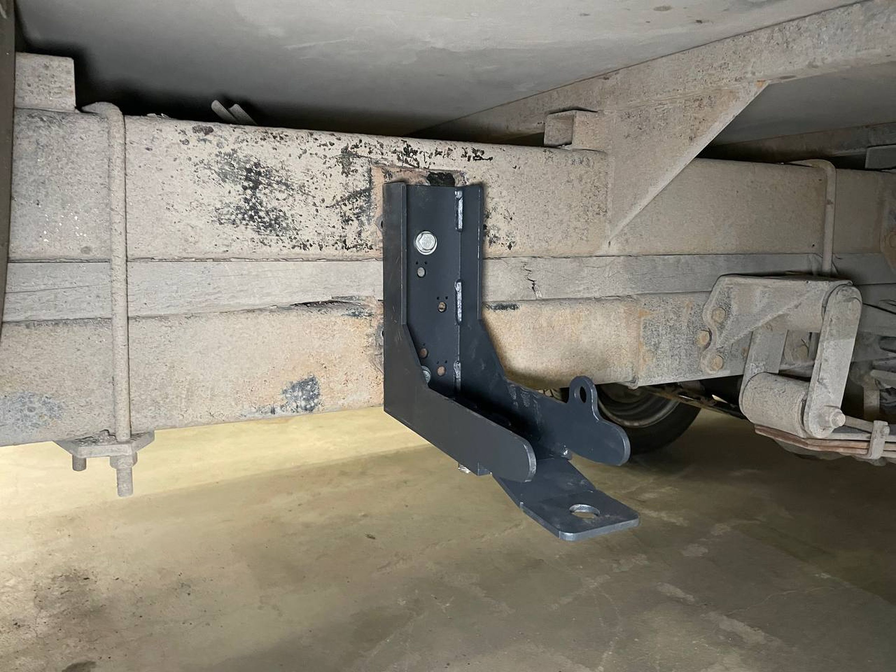 Кронштейн устанавливается на заводские отверстия в раме, взамен штатной стяжки фургона. Кронштейн изготовлен из 6 мм стали, это делает его прочным и жёстким.