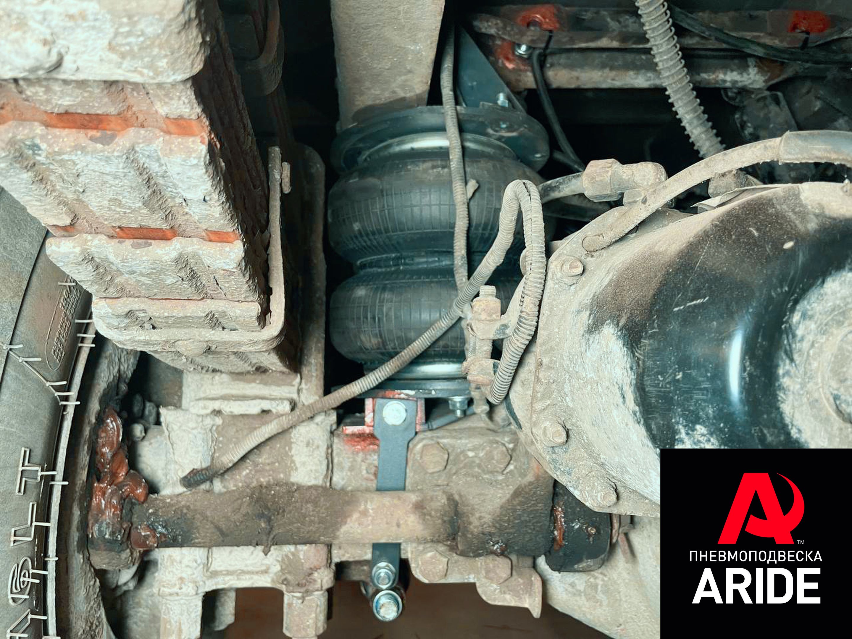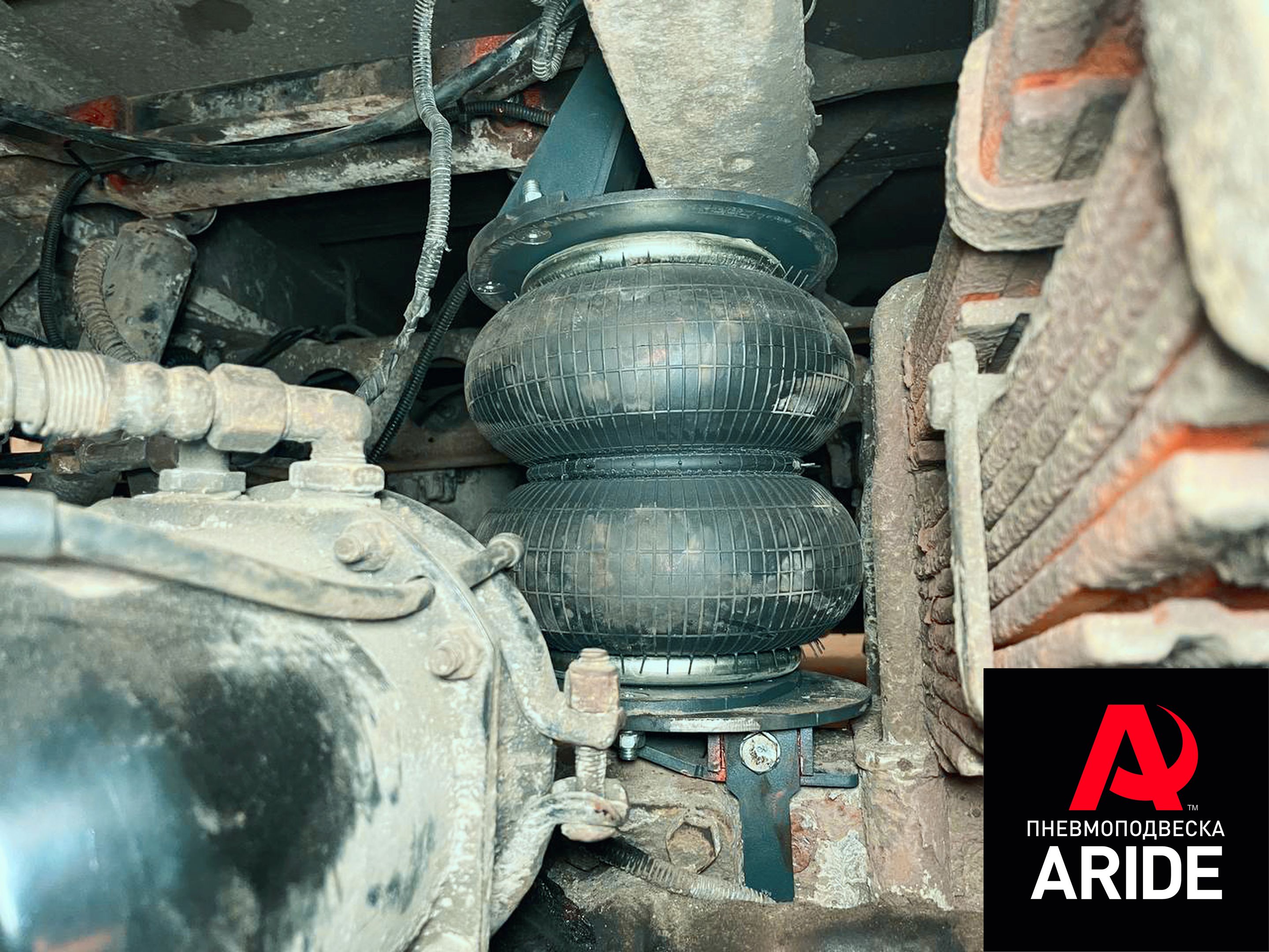 Верхние кронштейны, как это принято, устанавливаются на раму и притягиваются к ней при помощи болтового соединения. Далее к верхним кронштейнам крепятся пневмоподушки. Нижние же фланцы пневмоподушек крепятся к нижним кронштейнам, которые в свою очередь надеваются на чулок моста и притягиваются к нему при помощи обхватов.