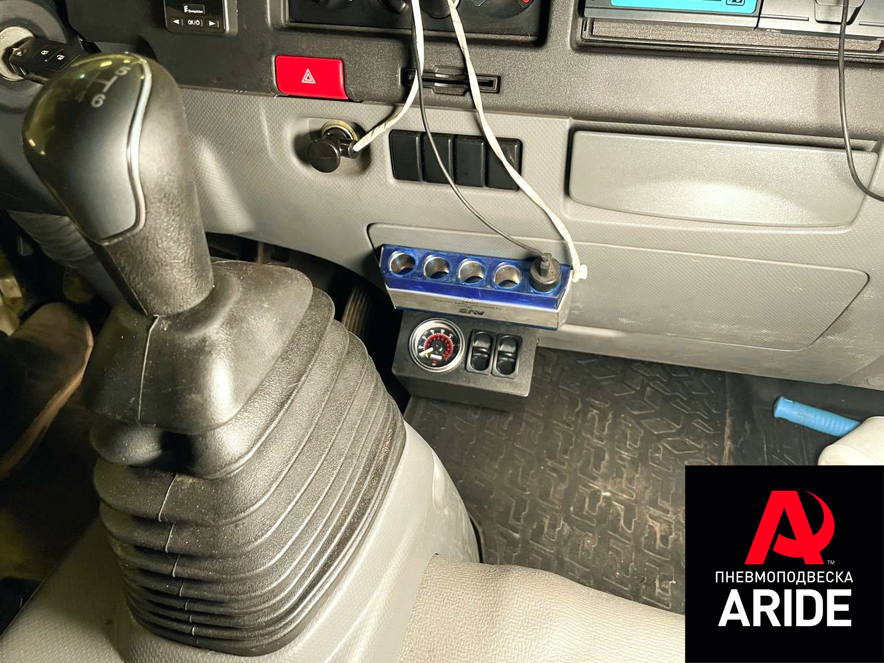 Она оборудована двустрелочным манометром с подсветкой и двумя пневмоклавишами, которые расположили в нижней части центральной консоли.