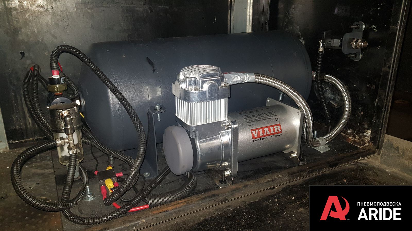 На автомобиль Hyundai HD78 были установлены комплекты пневмоподвески на переднюю и заднюю ось и установлена мощная система управления с компрессором на 24в.