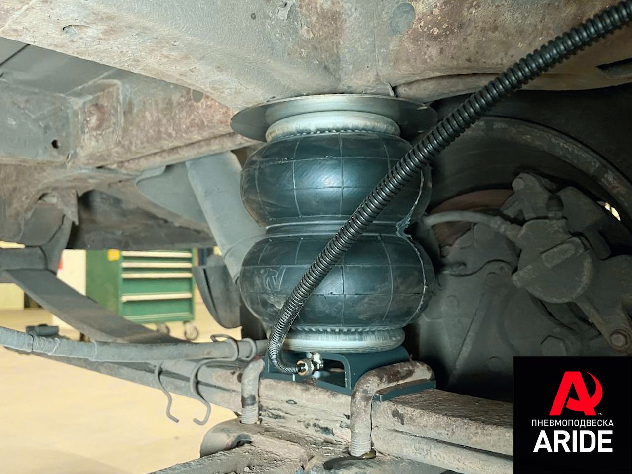 С завода автомобиль оборудован двухлистовым пакетом рессор. Рессоры со временем изнашиваются, и для того что бы вернуть автомобилю первозданную грузоподъёмность, увеличить клиренс и защитить от поломок и износов уже "уставшие" рессоры, на автомобиль устанавливается комплект вспомогательной пневмоподвески. Комплект состоит из пневмоподушек, кронштейнов, фитингов, пневматической трубки и болтов для крепления.