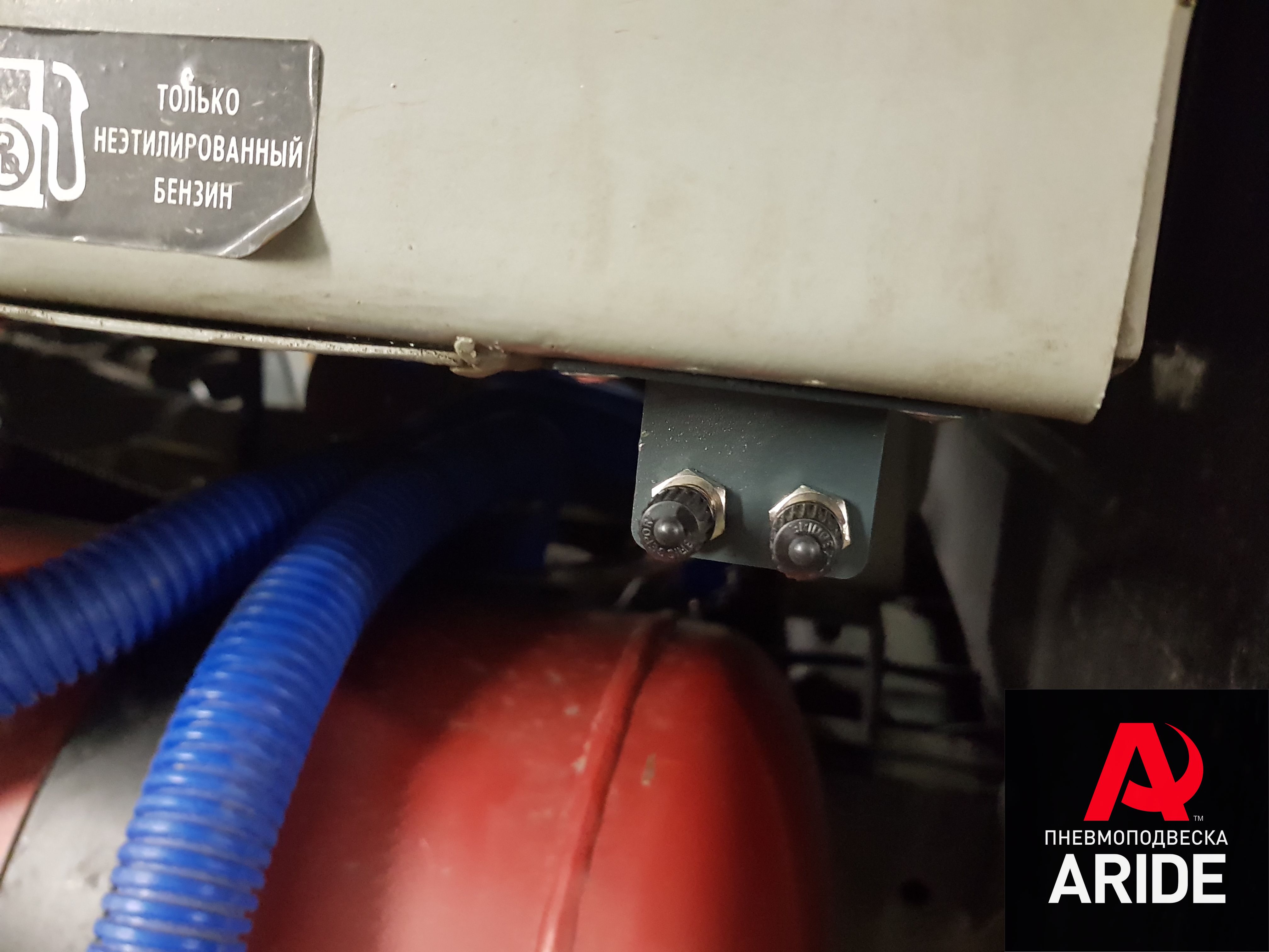 В стандартной комплектации осевых комплектов АРАЙД воздух в пневмоподушки подается любым внешним компрессором через клапан подкачки.