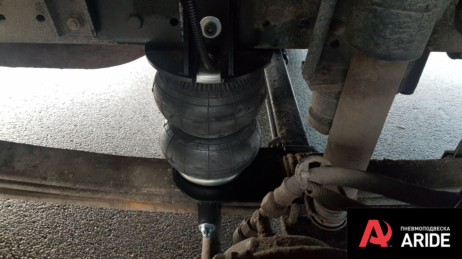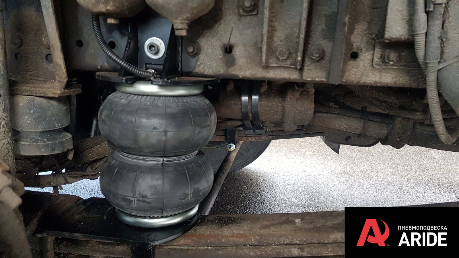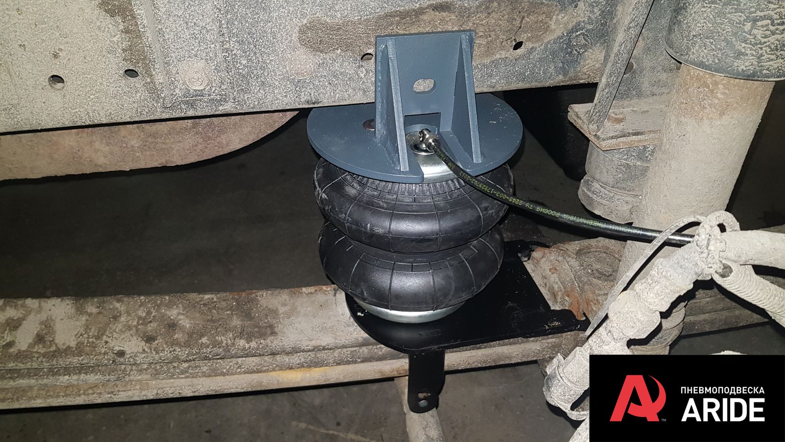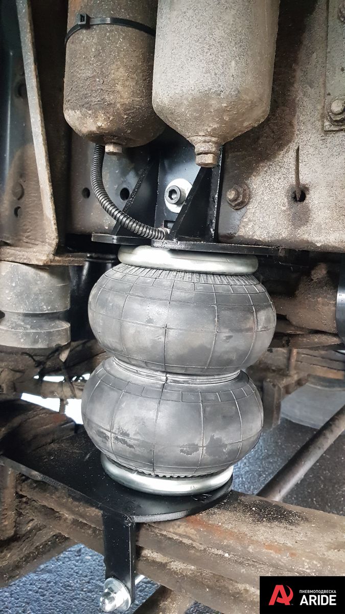 Установлен комплект вспомогательной пневмоподвески передней оси с простейшей системой накачки через ниппеля.