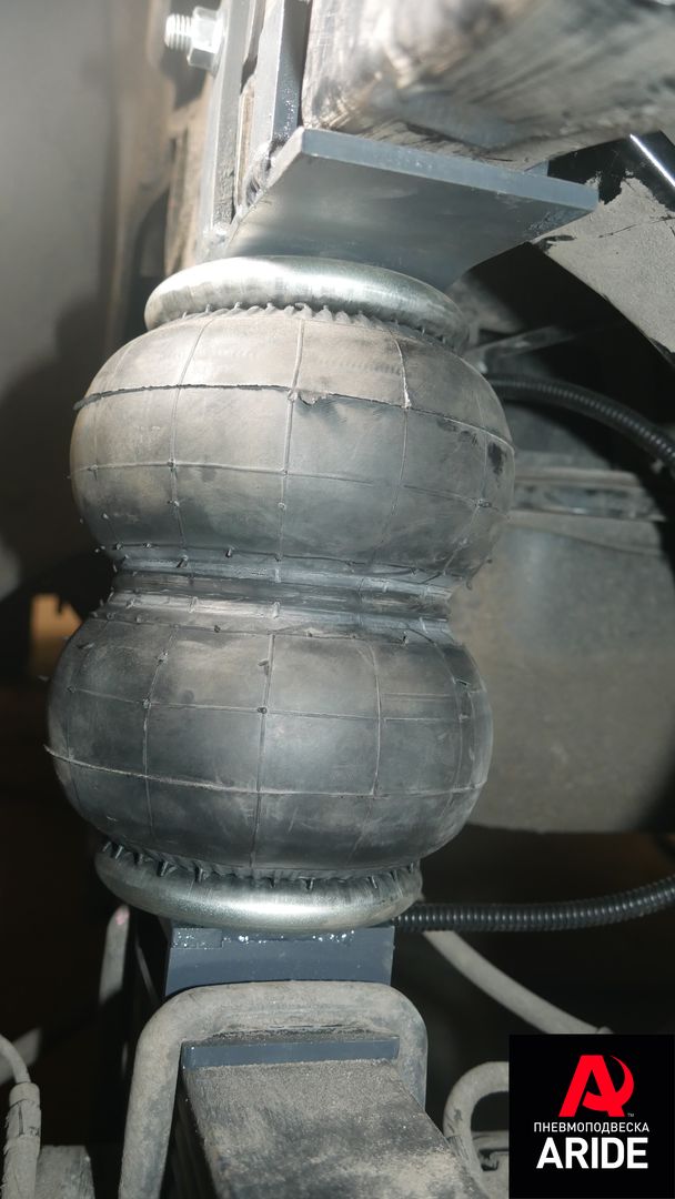 Установка надежного комплекта подвески для продления срока службы рессор на новой машине. На автомобиле планируется перевозка грузов. Для контроля давления в подушках установлены манометры и выведены ниппеля для подкачки.